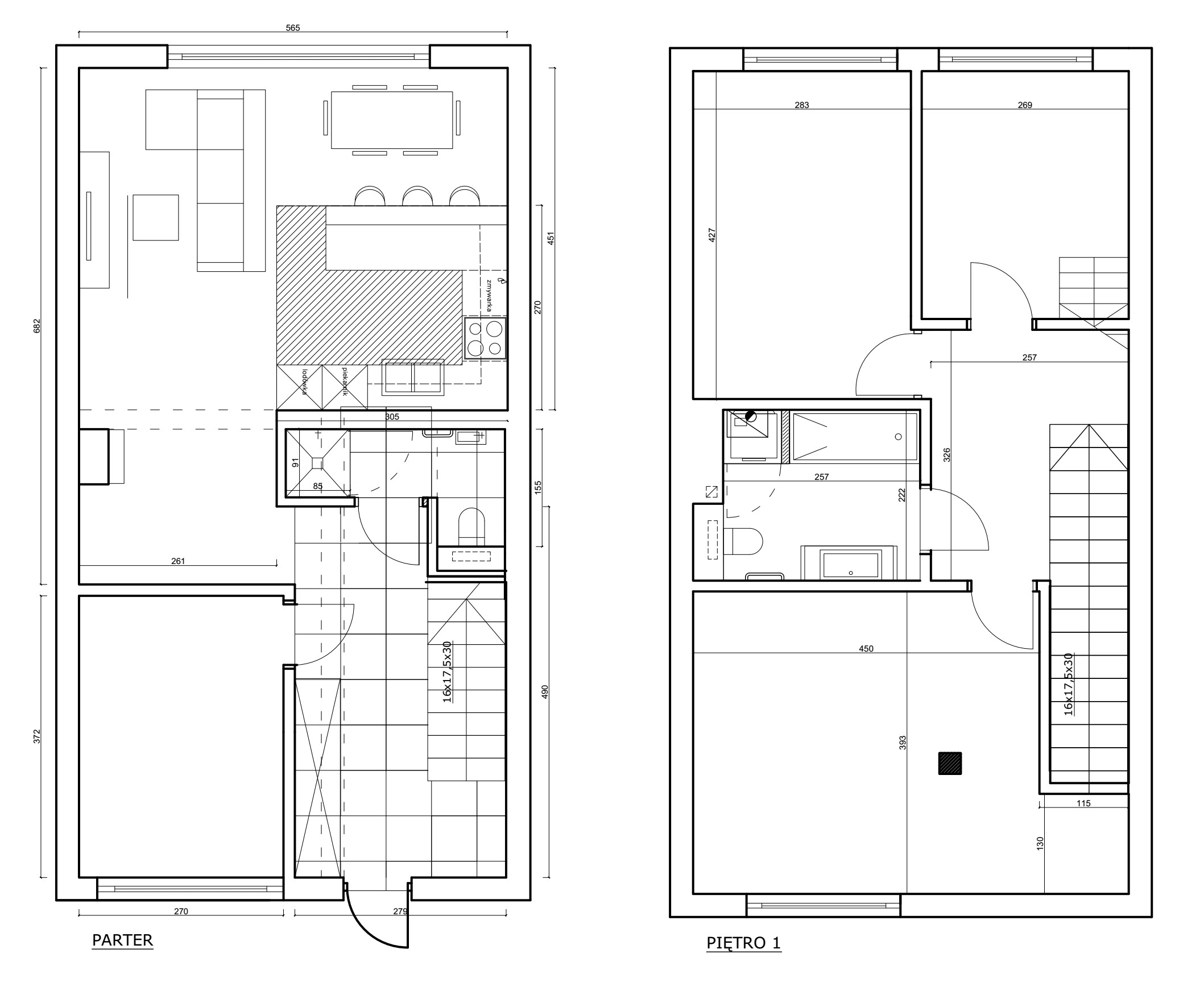 - Dwie pełne łazienki (na dole prysznic, na górze wanna)