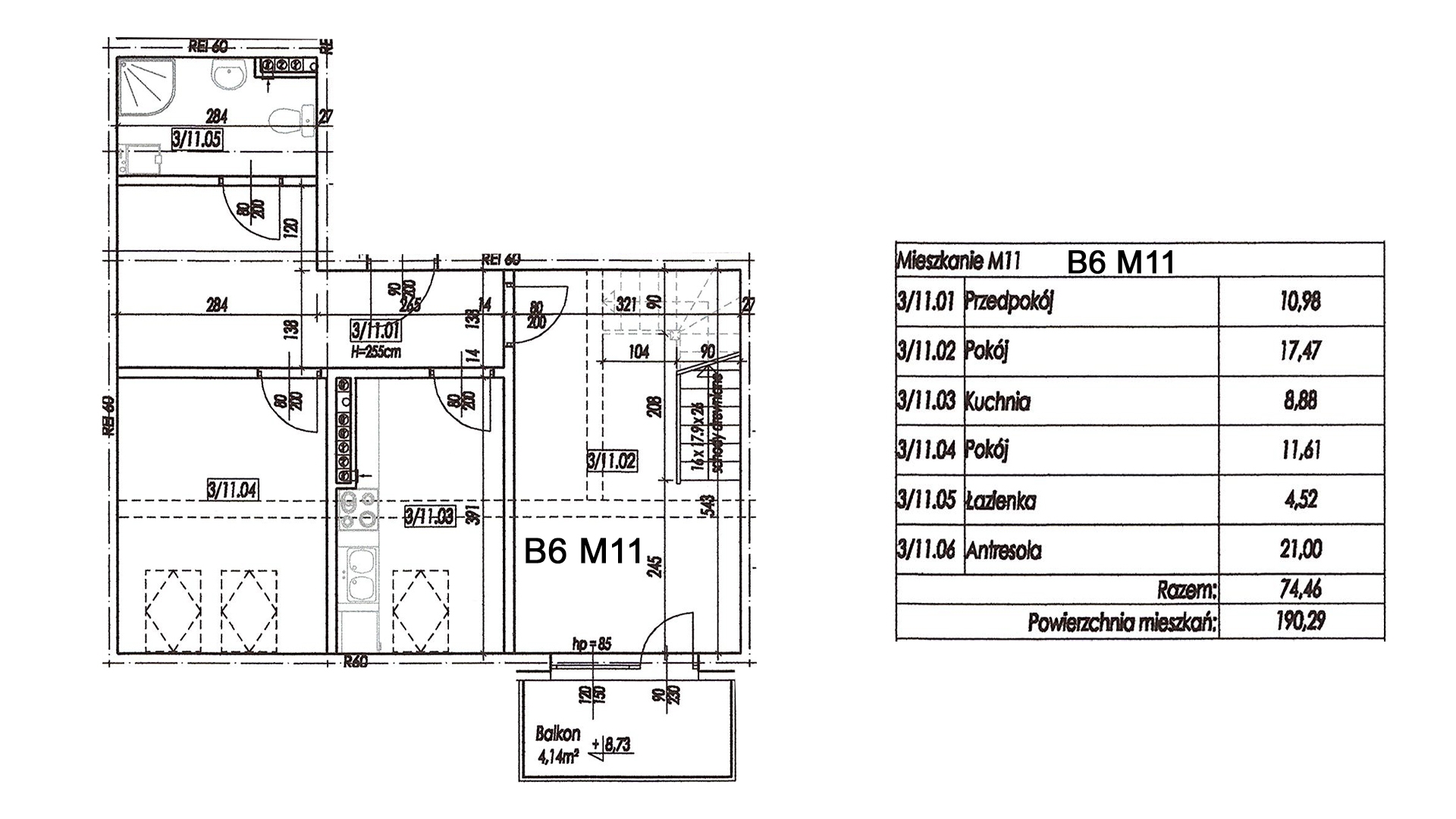 Powierzchnia 74.46 m2