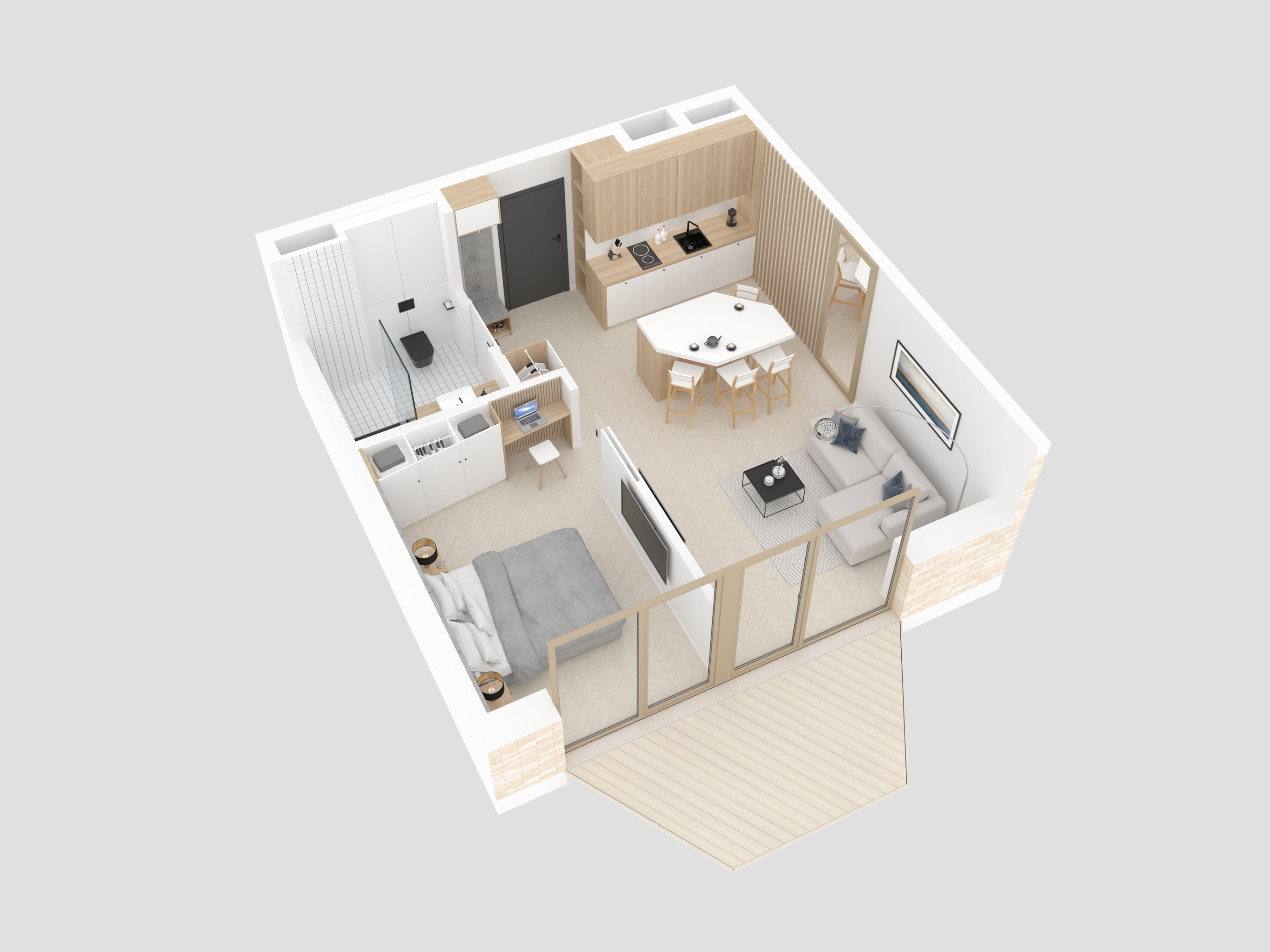 Design - Przestrzeń ma dla nas ogromne znaczenie. Osiedle zostało zaprojektowane tak, aby każdy użytkownik czuł się w nim swobodnie, kameralnie i komfortowo. Oferujemy funkcjonalne apartamenty z dużymi przeszkleniami oraz indywidualnymi balkonami lub zielonymi tarasami na poziomie parteru. Komórki lokatorskie oraz miejsca postojowe usytuowane na poziomie -1 zapewniają wypoczywającym wygodę i prywatność .
