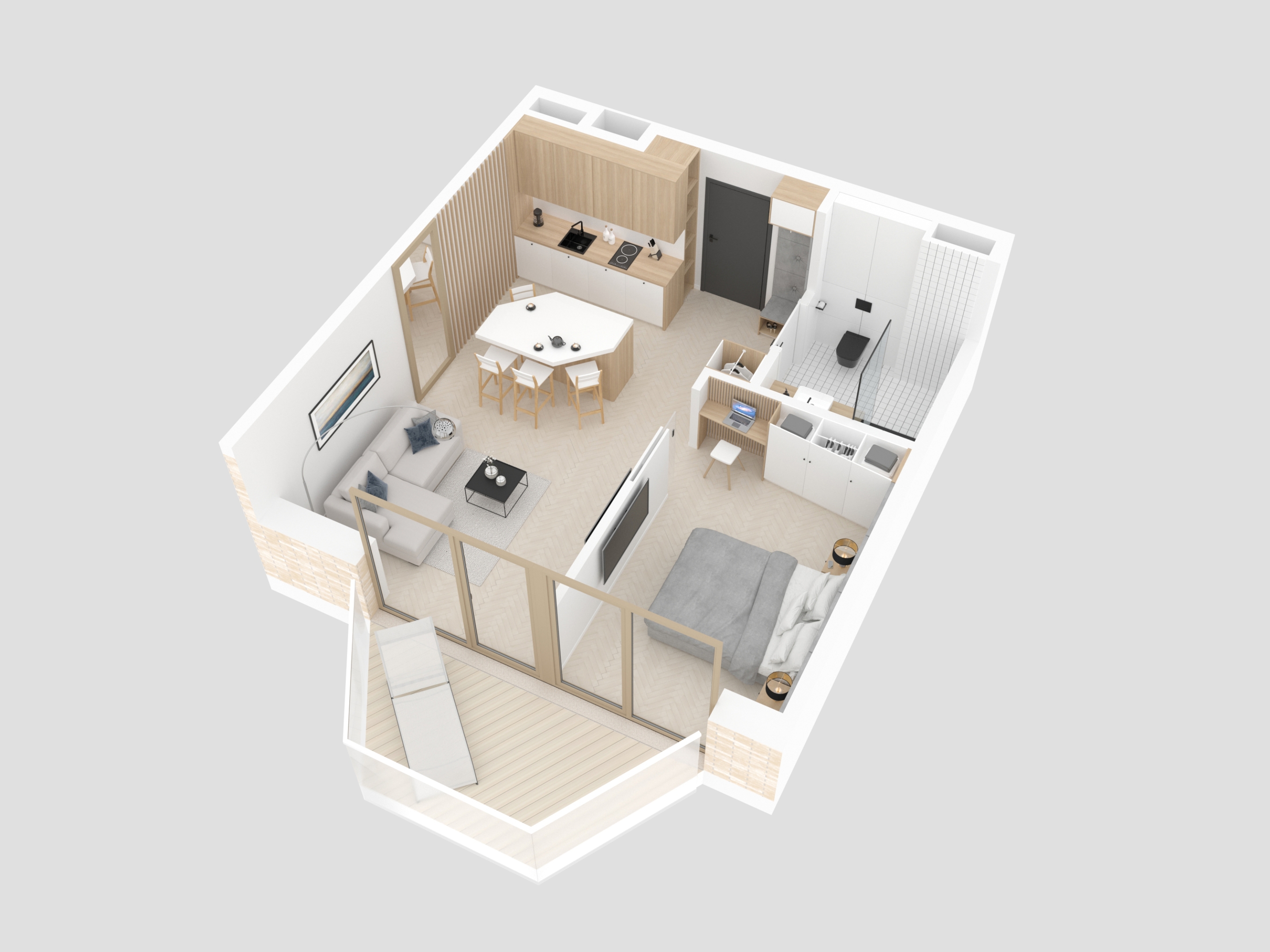 Design - Przestrzeń ma dla nas ogromne znaczenie. Osiedle zostało zaprojektowane tak, aby każdy użytkownik czuł się w nim swobodnie, kameralnie i komfortowo. Oferujemy funkcjonalne apartamenty z dużymi przeszkleniami oraz indywidualnymi balkonami lub zielonymi tarasami na poziomie parteru. Komórki lokatorskie oraz miejsca postojowe usytuowane na poziomie -1 zapewniają wypoczywającym wygodę i prywatność .