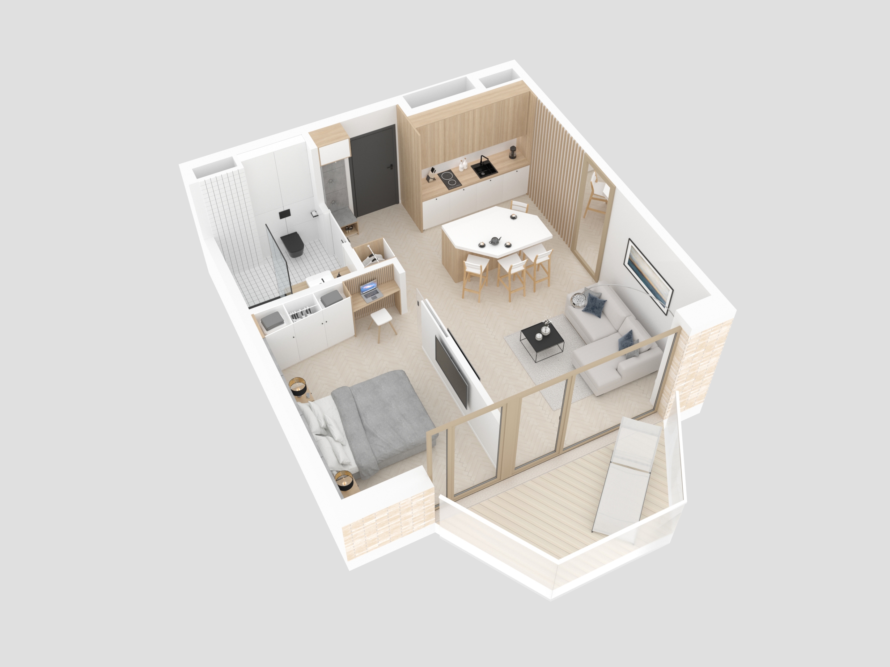 Design - Przestrzeń ma dla nas ogromne znaczenie. Osiedle zostało zaprojektowane tak, aby każdy użytkownik czuł się w nim swobodnie, kameralnie i komfortowo. Oferujemy funkcjonalne apartamenty z dużymi przeszkleniami oraz indywidualnymi balkonami lub zielonymi tarasami na poziomie parteru. Komórki lokatorskie oraz miejsca postojowe usytuowane na poziomie -1 zapewniają wypoczywającym wygodę i prywatność .