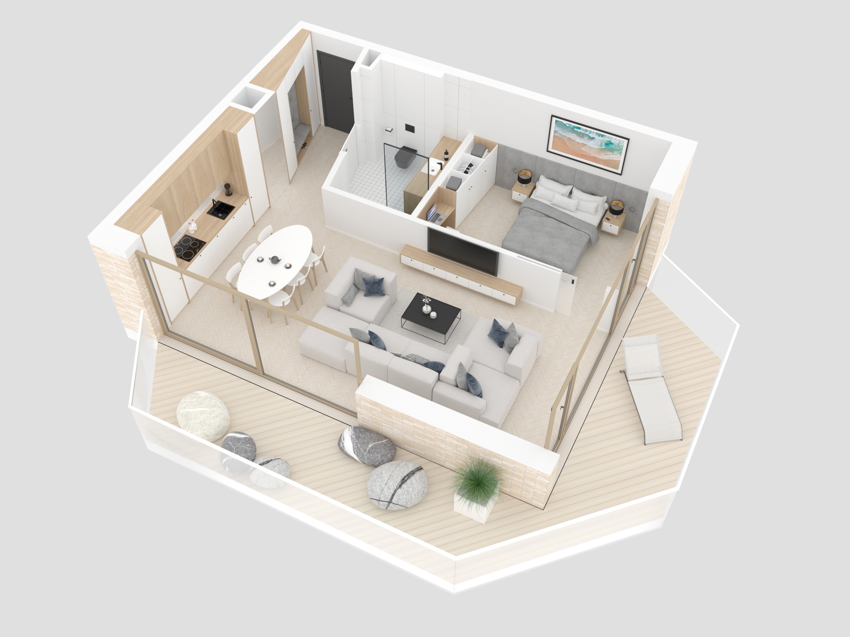 Design - Przestrzeń ma dla nas ogromne znaczenie. Osiedle zostało zaprojektowane tak, aby każdy użytkownik czuł się w nim swobodnie, kameralnie i komfortowo. Oferujemy funkcjonalne apartamenty z dużymi przeszkleniami oraz indywidualnymi balkonami lub zielonymi tarasami na poziomie parteru. Komórki lokatorskie oraz miejsca postojowe usytuowane na poziomie -1 zapewniają wypoczywającym wygodę i prywatność .