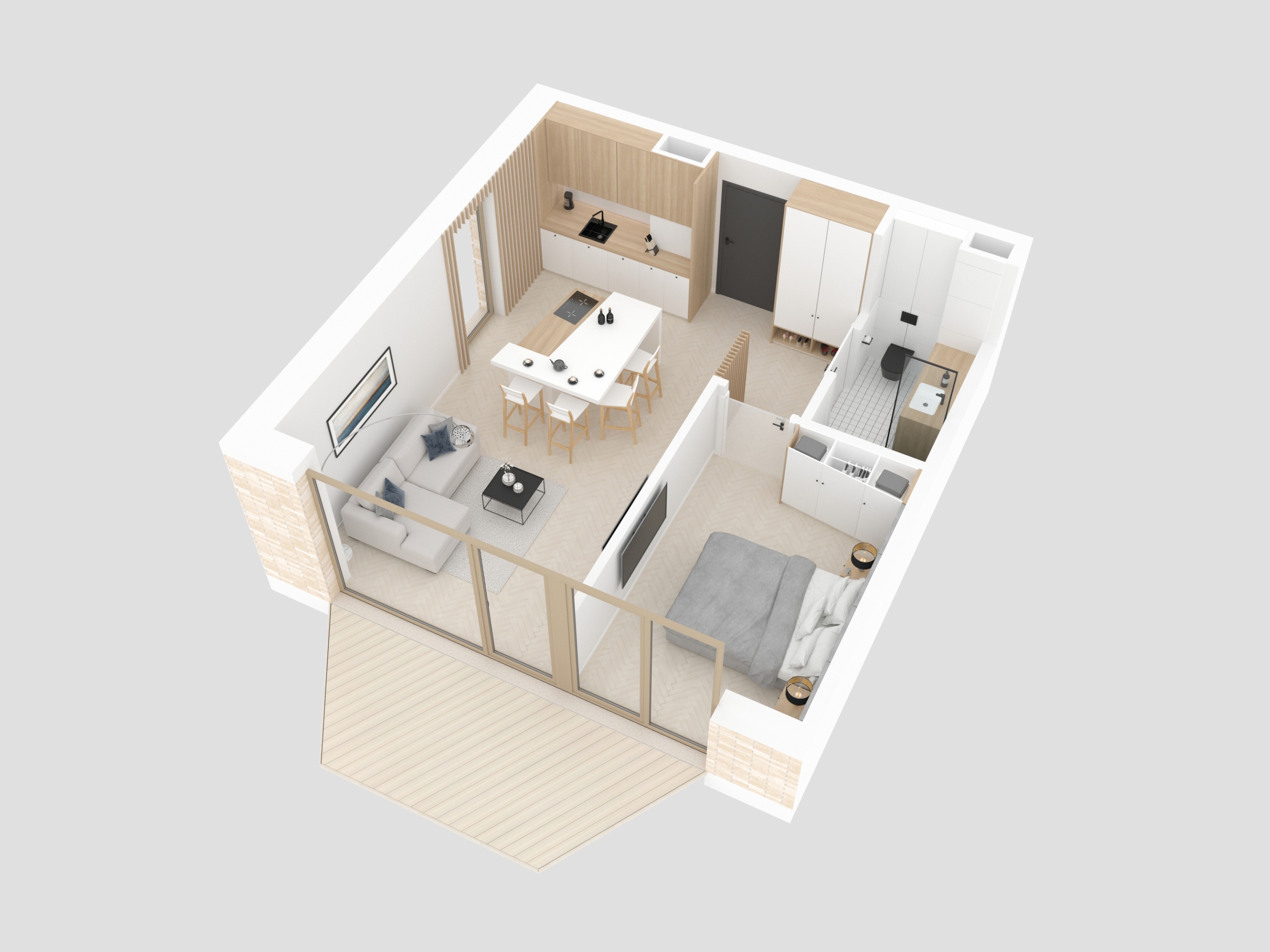 Design - Przestrzeń ma dla nas ogromne znaczenie. Osiedle zostało zaprojektowane tak, aby każdy użytkownik czuł się w nim swobodnie, kameralnie i komfortowo. Oferujemy funkcjonalne apartamenty z dużymi przeszkleniami oraz indywidualnymi balkonami lub zielonymi tarasami na poziomie parteru. Komórki lokatorskie oraz miejsca postojowe usytuowane na poziomie -1 zapewniają wypoczywającym wygodę i prywatność .