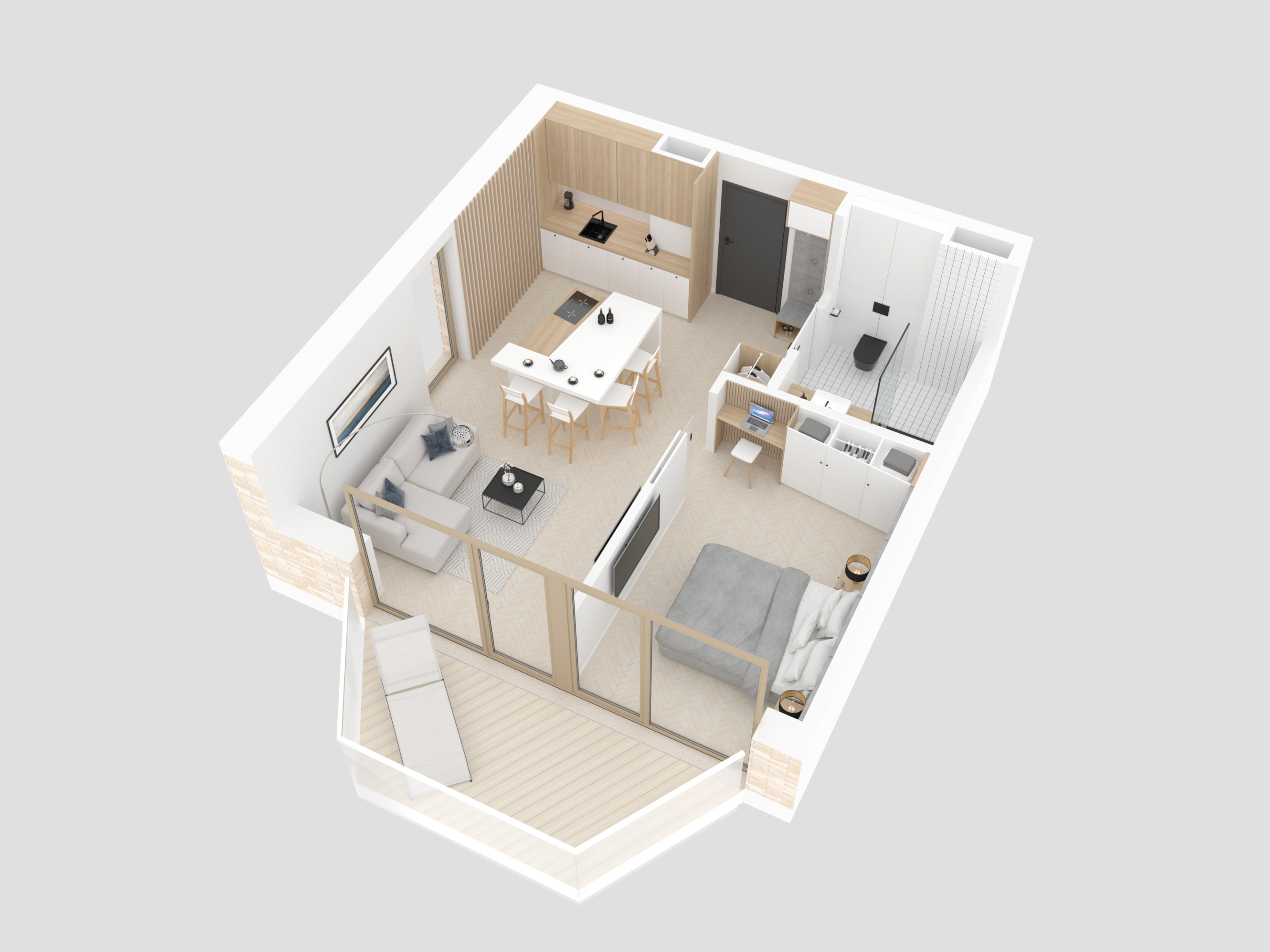 - balkon o pow. 7,64 m kw.