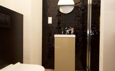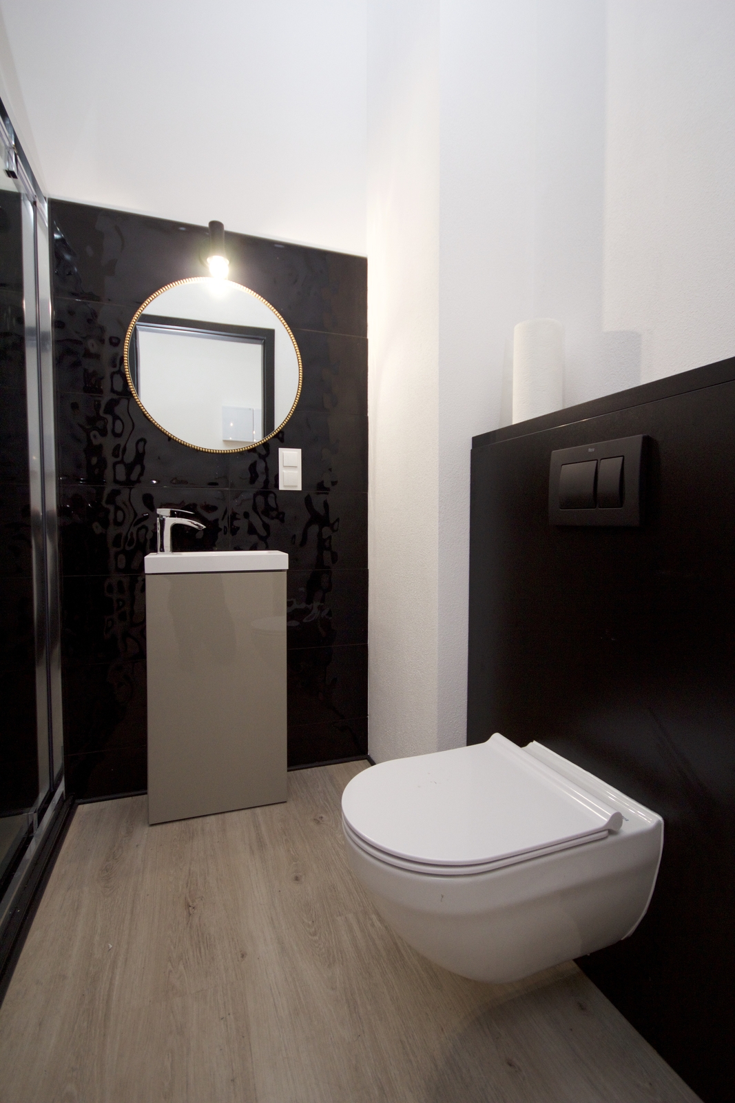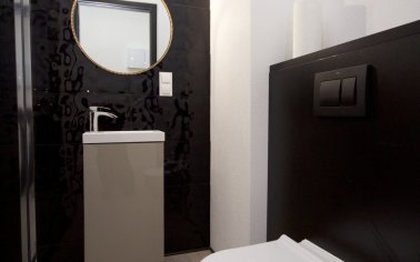 Na powierzchnię apartamentu wynoszącą 66 mkw składają się dwa połączone ze sobą mieszkania o pow. 33 mkw. W apartamencie: