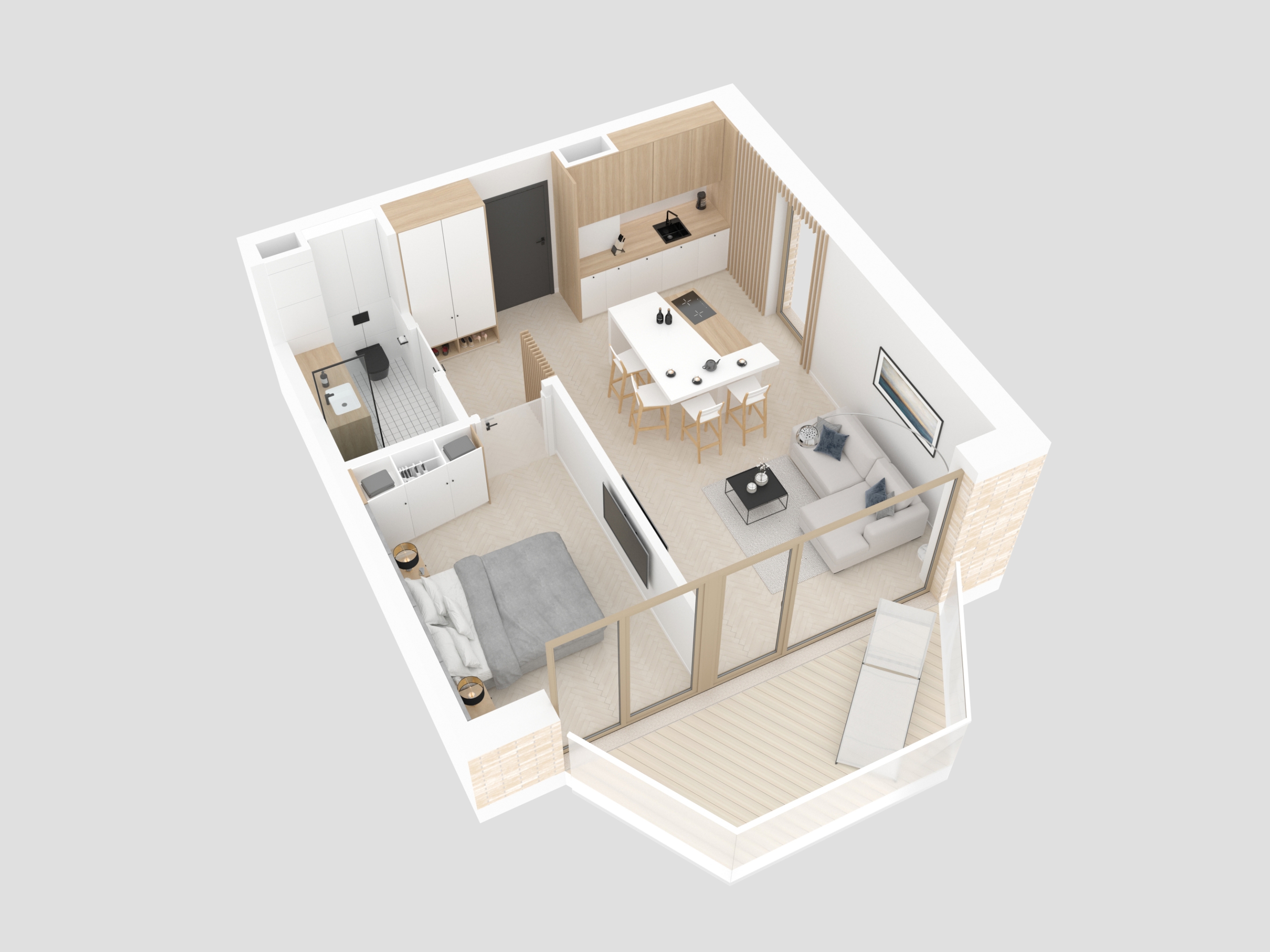 Design - Przestrzeń ma dla nas ogromne znaczenie. Osiedle zostało zaprojektowane tak, aby każdy użytkownik czuł się w nim swobodnie, kameralnie i komfortowo. Oferujemy funkcjonalne apartamenty z dużymi przeszkleniami oraz indywidualnymi balkonami lub zielonymi tarasami na poziomie parteru. Komórki lokatorskie oraz miejsca postojowe usytuowane na poziomie -1 zapewniają wypoczywającym wygodę i prywatność .