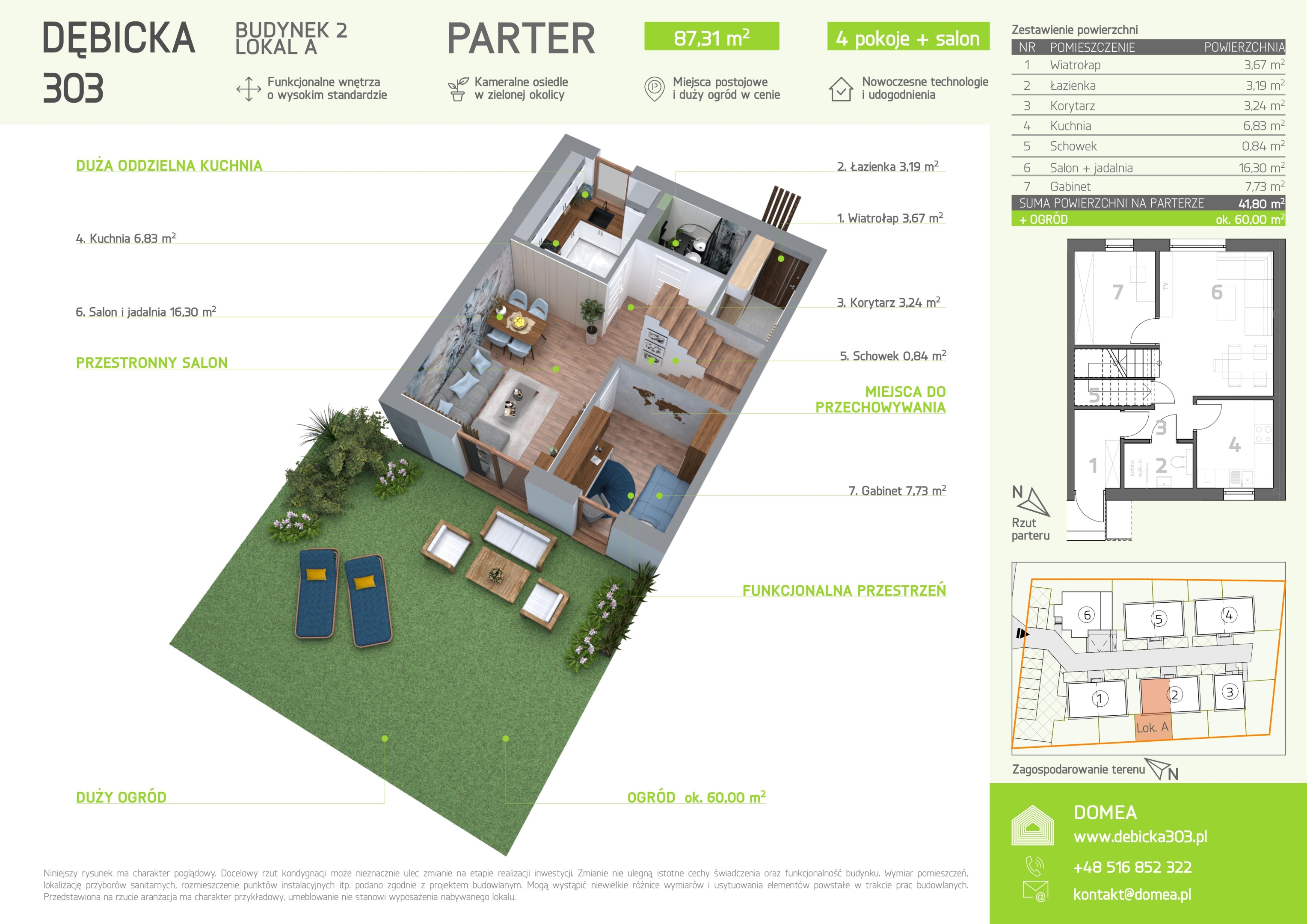 Doskonała lokalizacja inwestycji zapewnia dogodny dojazd do autostrady i drogi ekspresowej. Dojazd do centrum Rzeszowa to niecałe 10 minut. Tuż obok Dębickiej 303 znajduje się duże osiedle, na którym nie brakuje sklepów i punktów usługowych.