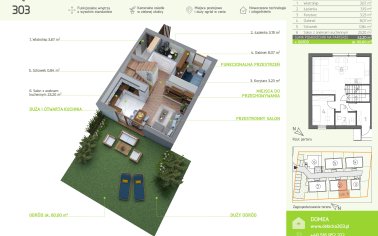 W ofercie znajduje się 8 segmentów o powierzchni blisko 88 m2, 2 mieszkania o powierzchni 37 i 47 m2 i 2 mieszkania o powierzchni 68 m2. 10 lokali posiada własny ogródek, a 2 – przestronne tarasy.