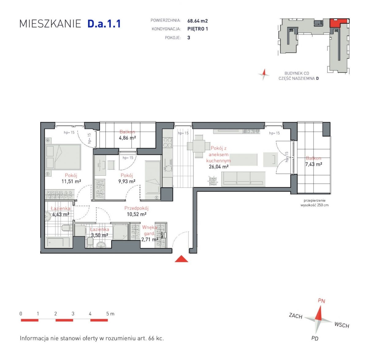 Powierzchnia 68.64 m2