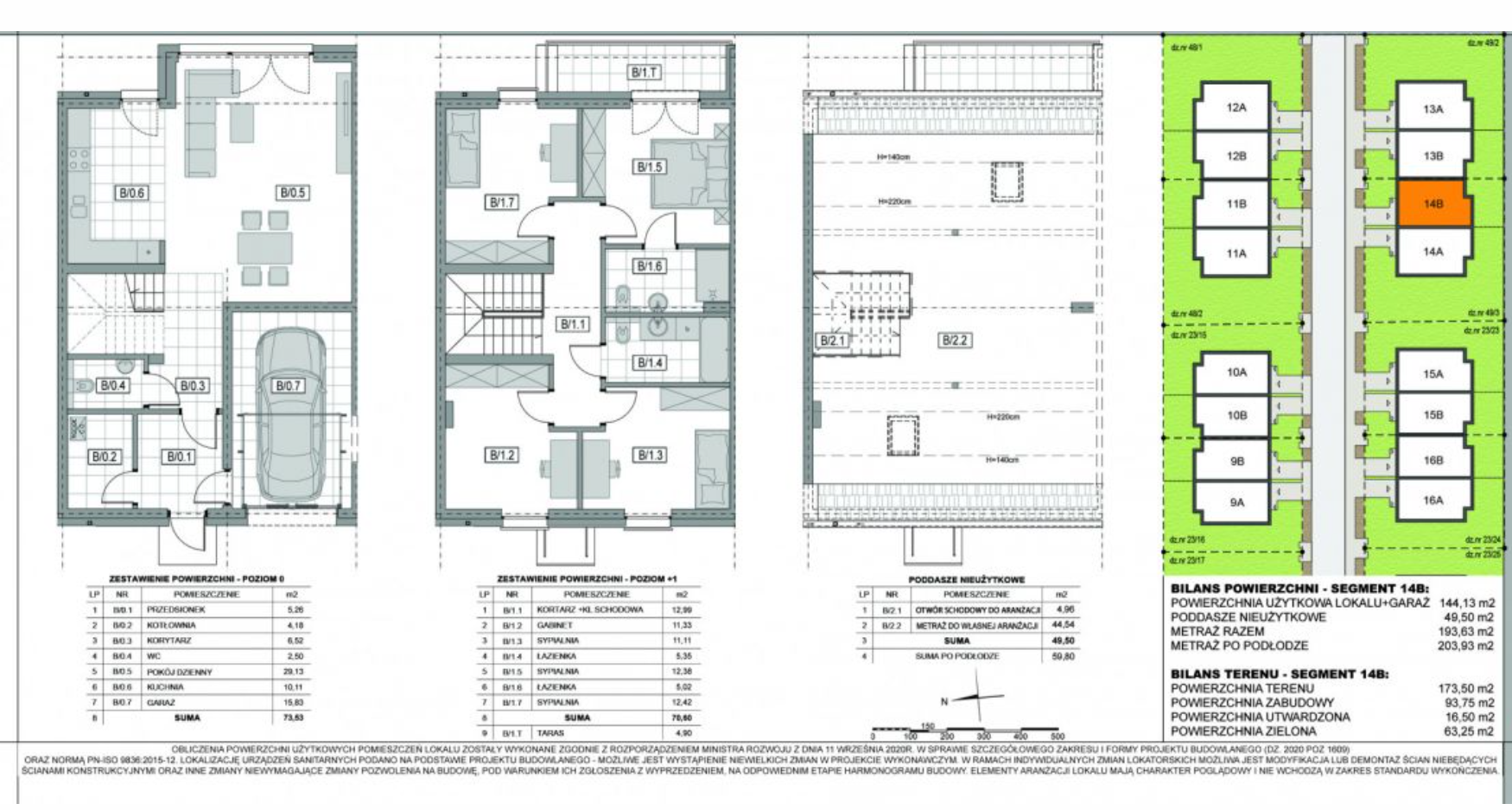 Dom o powierzchni użytkowej 144,13 m2 (pow. całkowita 193,63 m2), pow. działki 173,50 m2