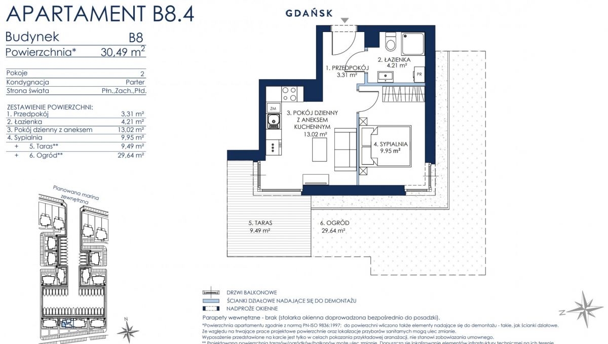 Taras: 9.49 m2Ogród: 29.64 m2