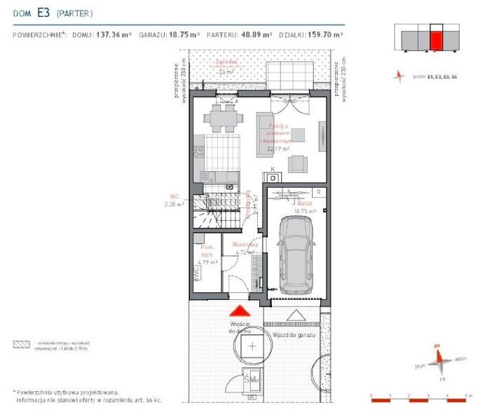 - Komfortowy salon z aneksem kuchennym na poziomie parteru z instalacją kominkową i wyjściem na prywatny ogródek (33 m2),