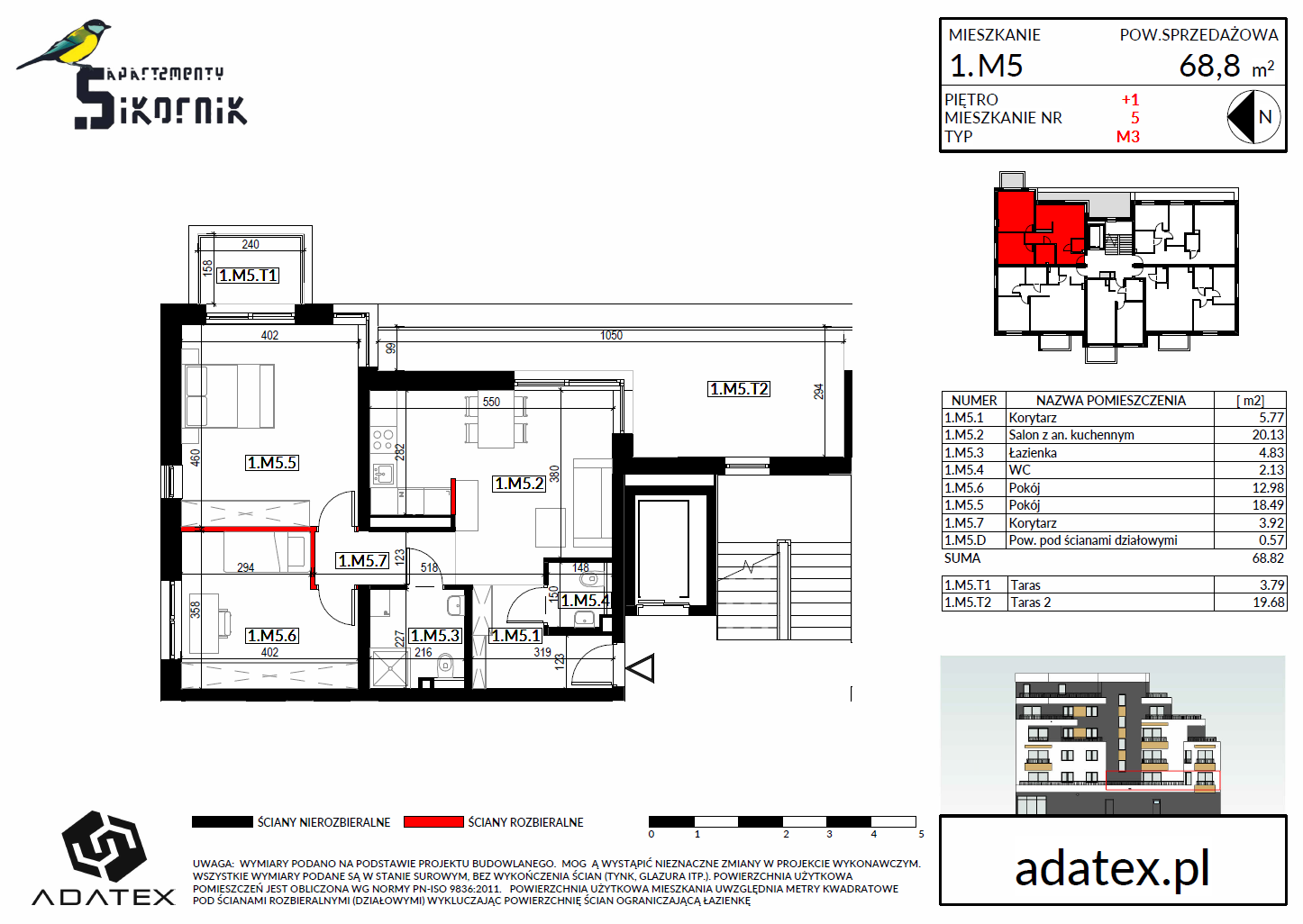 Mieszkanie 68,82 m2 1.M5, Osiedle Apartamenty Sikornik Gliwice - Gliwice