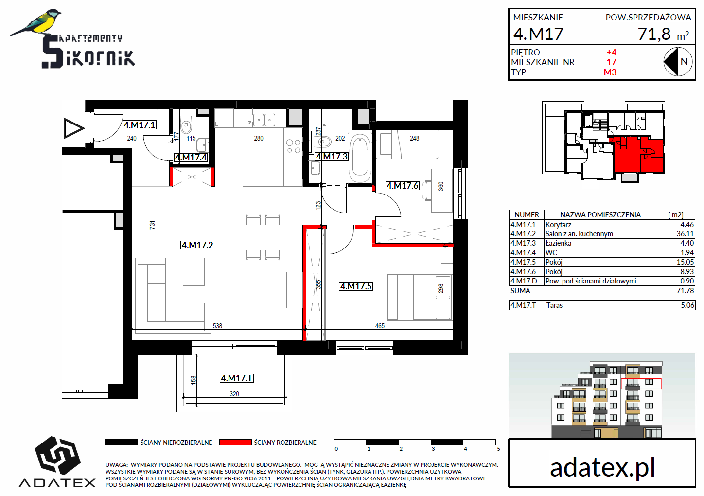 Mieszkanie 71,78 m2 4.M17, Osiedle Apartamenty Sikornik Gliwice - Gliwice
