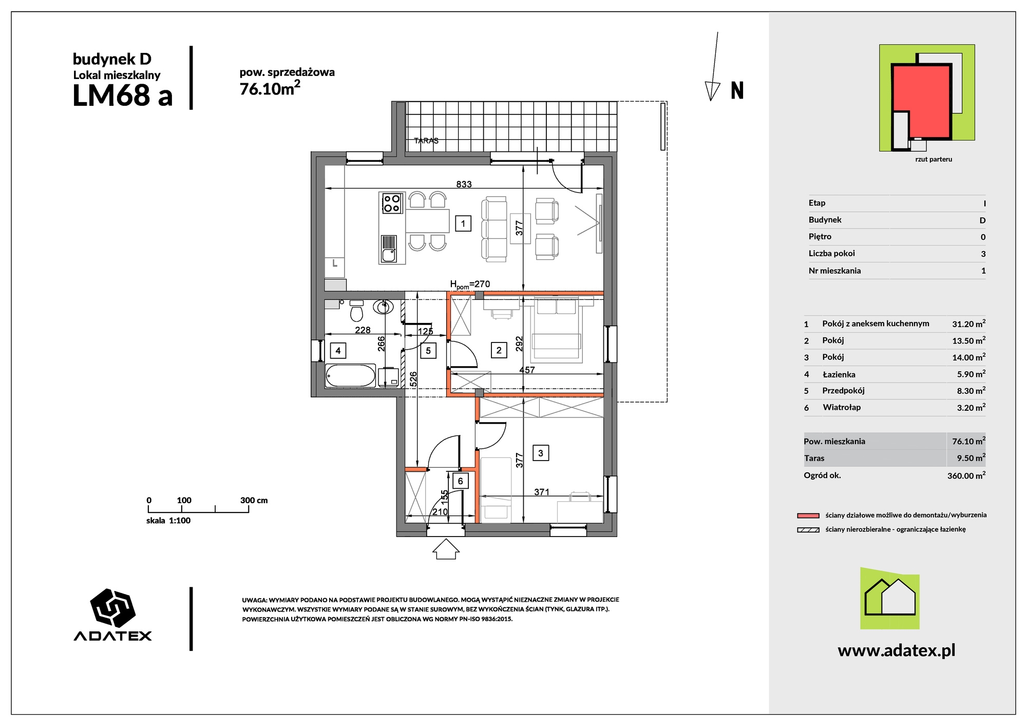 Powierzchnia 76.1 m2