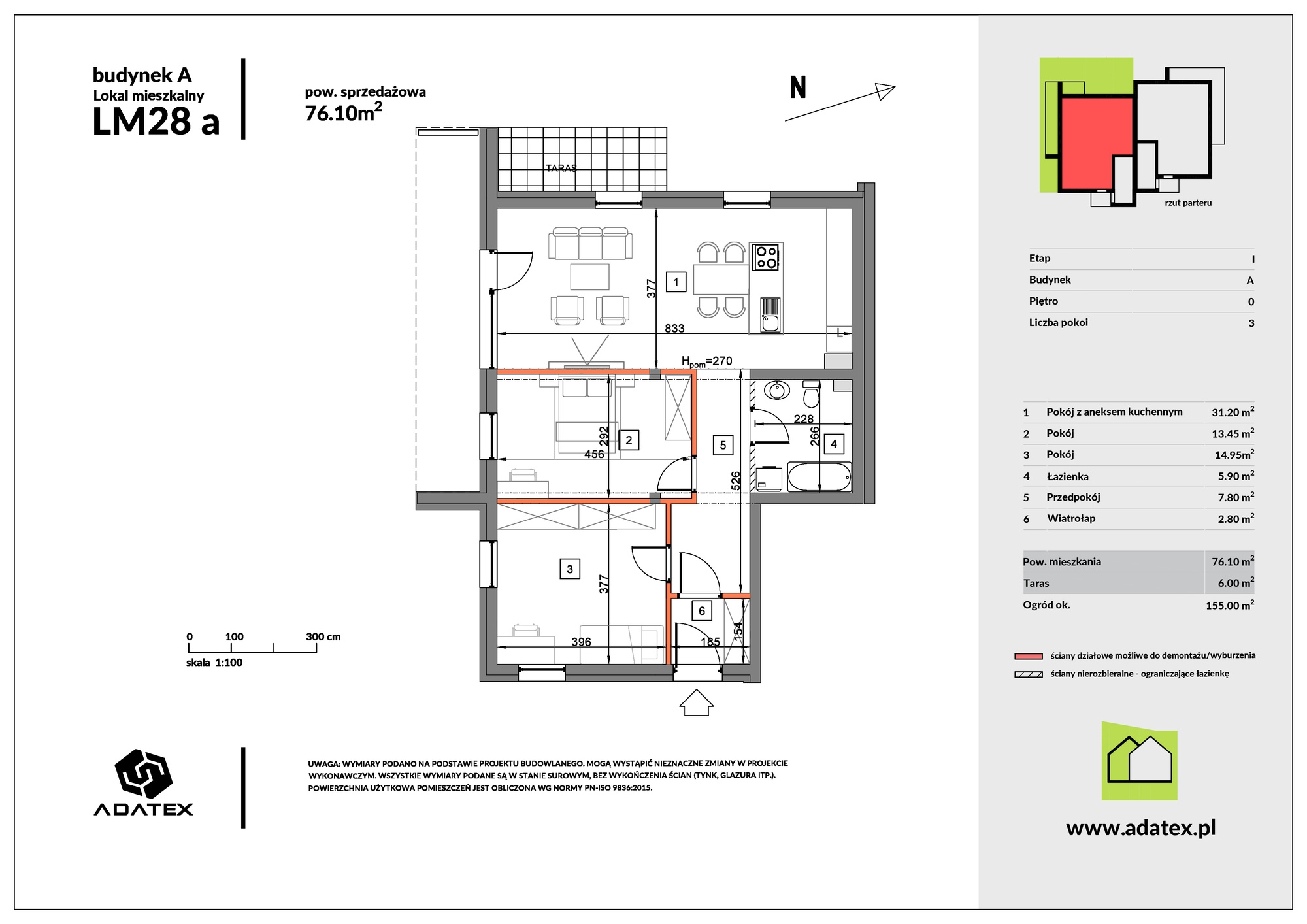 Powierzchnia 76.1 m2