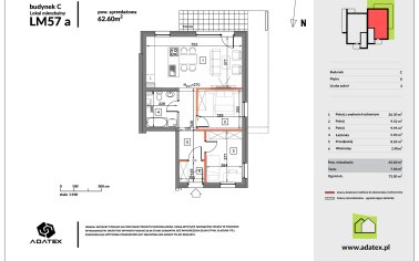 - Mieszkanie 62,60 m2 LM57 a budynek C