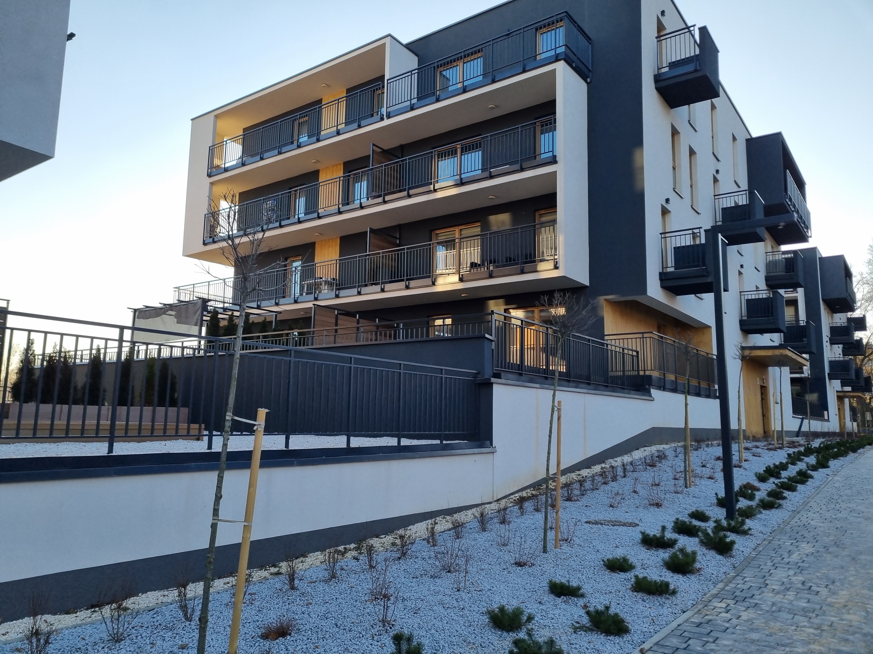 - ogródki / balkony / tarasy wykończone, z punktem elektrycznym oraz światłem.
