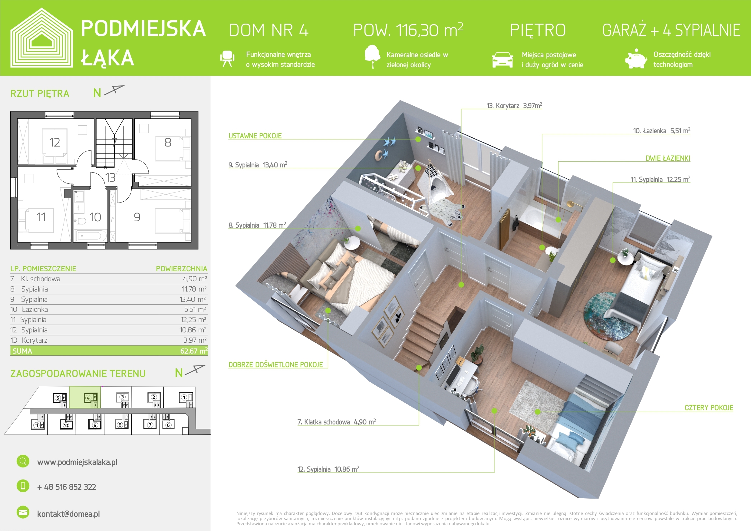 Inwestycja składa się z 11 domów wolnostojących. Każdy posiadać będzie własny ogrodzony duży ogród.