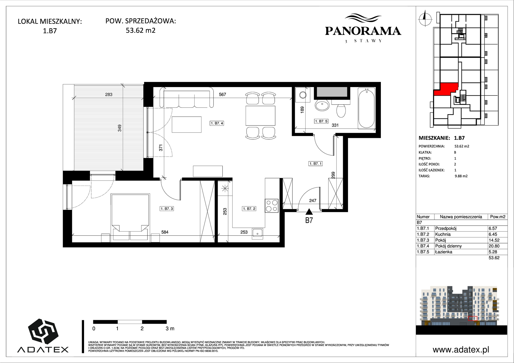 Mieszkanie 53,62 m2 - 1.B7, Osiedle Panorama 3 Stawy Katowice - Katowice