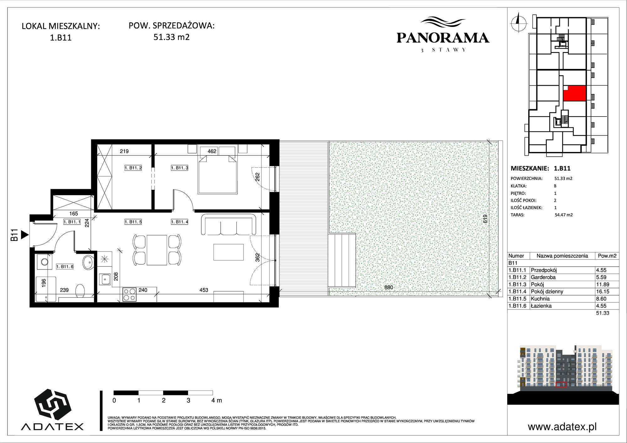 Mieszkanie 51,33 m2 - 1.B11, Osiedle Panorama 3 Stawy Katowice - Katowice