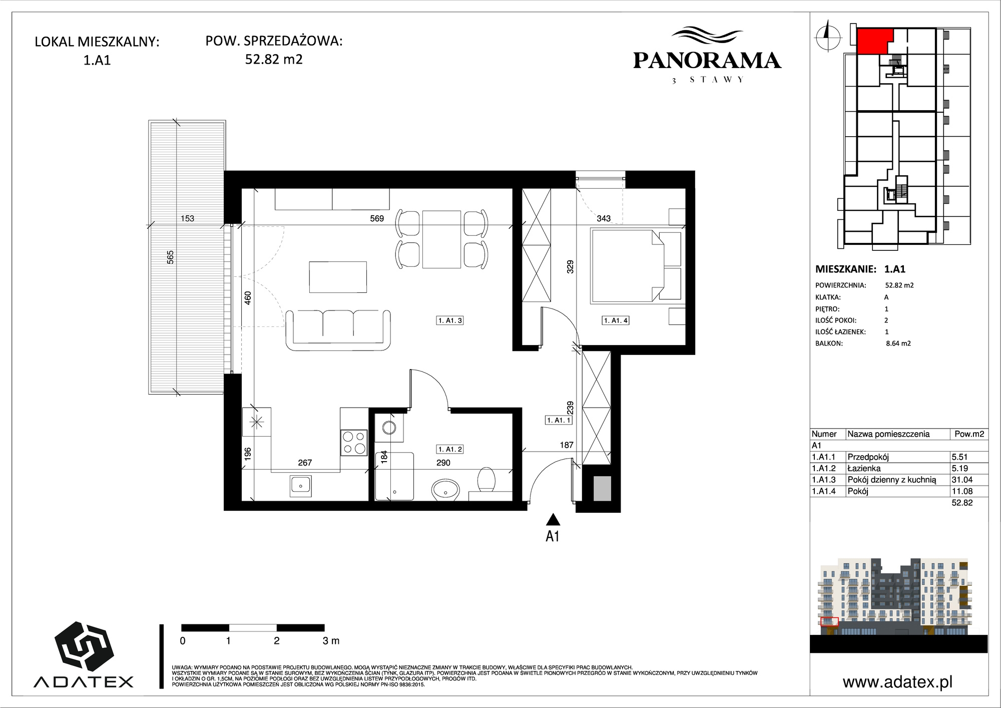 Mieszkanie 52,82 m2 - 1.A1, Osiedle Panorama 3 Stawy Katowice - Katowice
