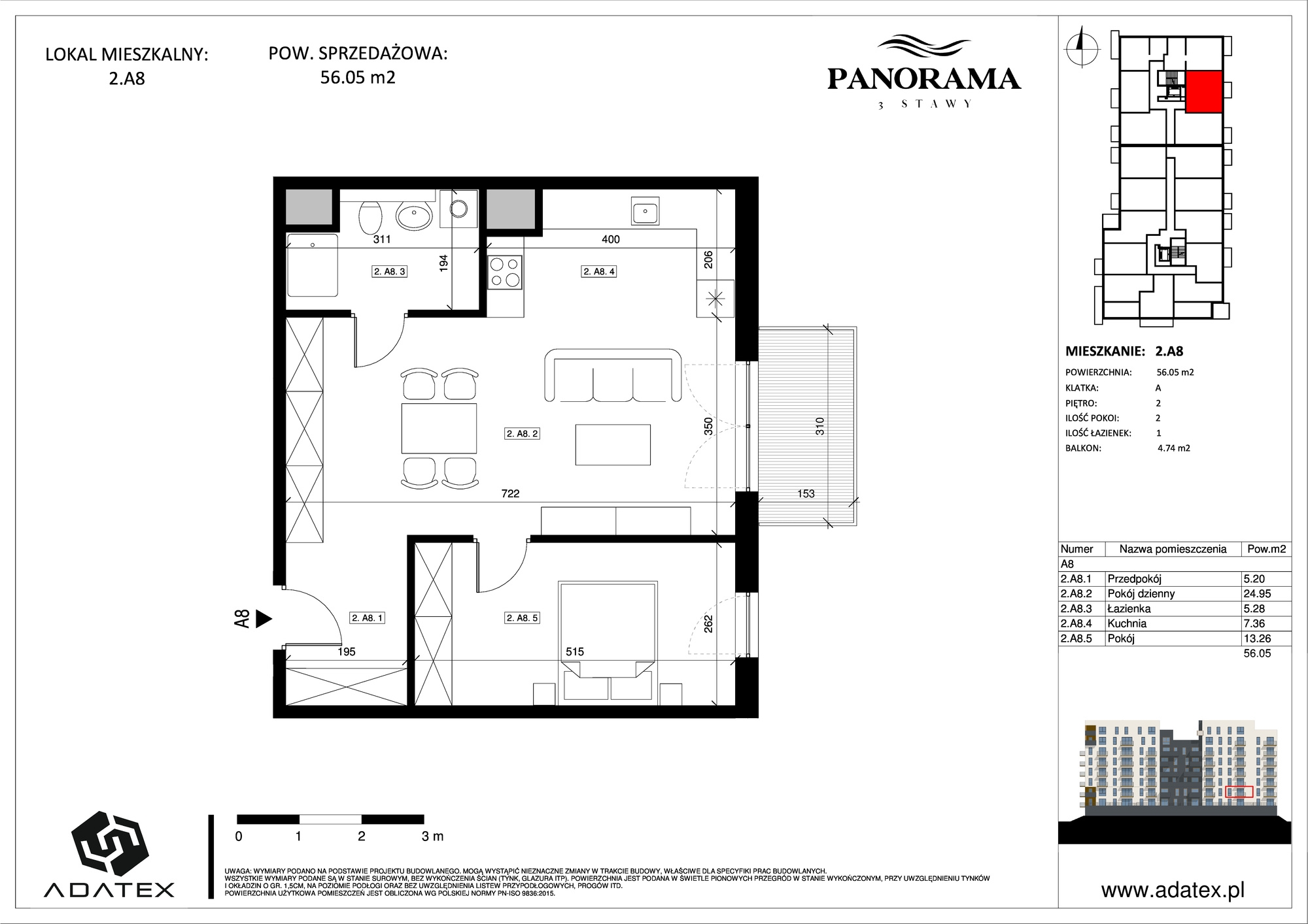 Mieszkanie 56,05 m2 - 2.A8, Osiedle Panorama 3 Stawy Katowice - Katowice