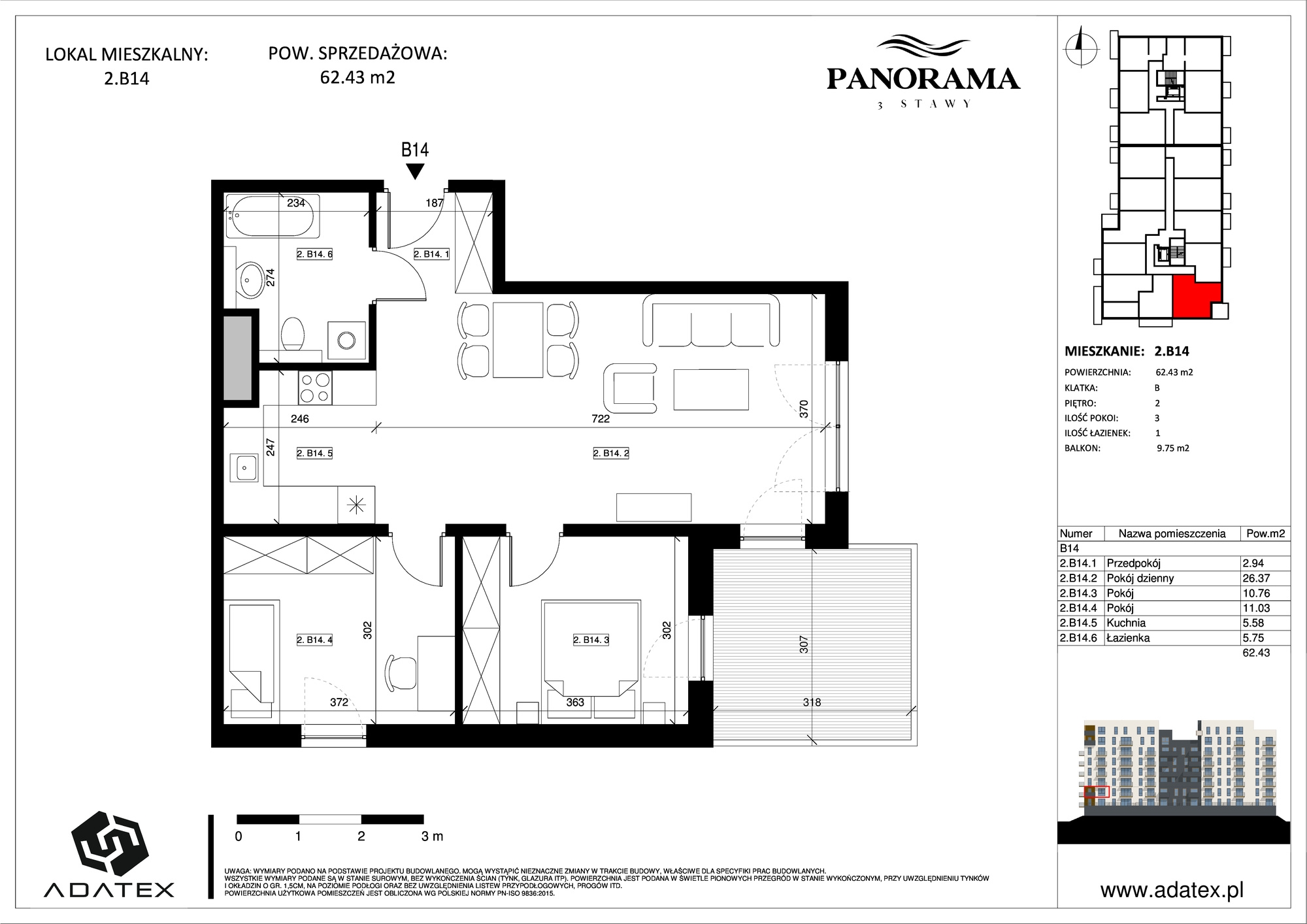 Mieszkanie 62,43 m2 - 2.B14, Osiedle Panorama 3 Stawy Katowice - Katowice