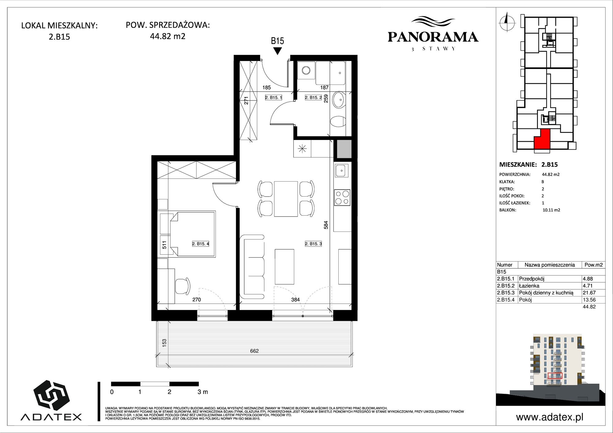 Mieszkanie 44,82 m2 - 2.B15, Osiedle Panorama 3 Stawy Katowice - Katowice