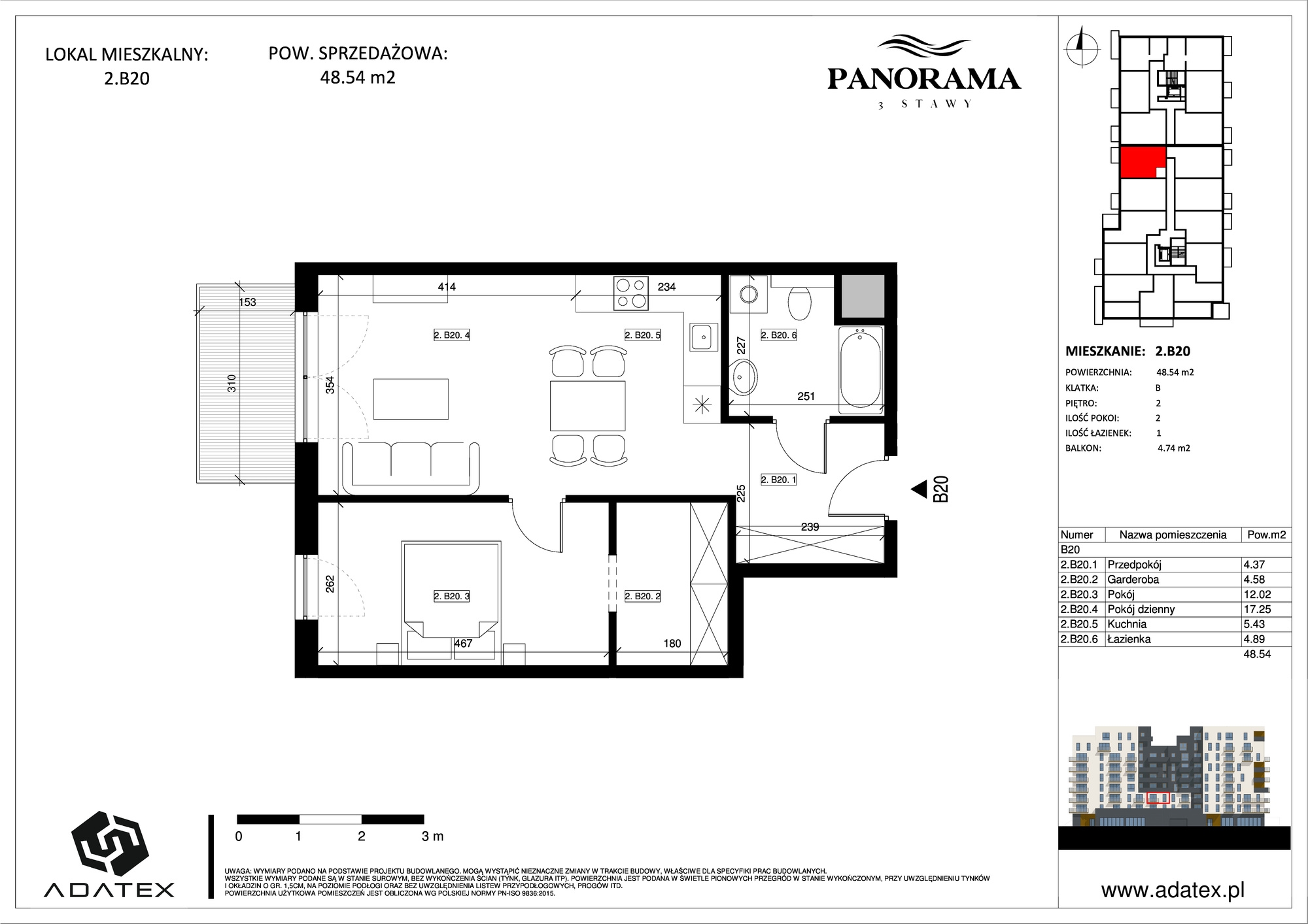 Mieszkanie 48,54 m2 - 2.B20, Osiedle Panorama 3 Stawy Katowice - Katowice
