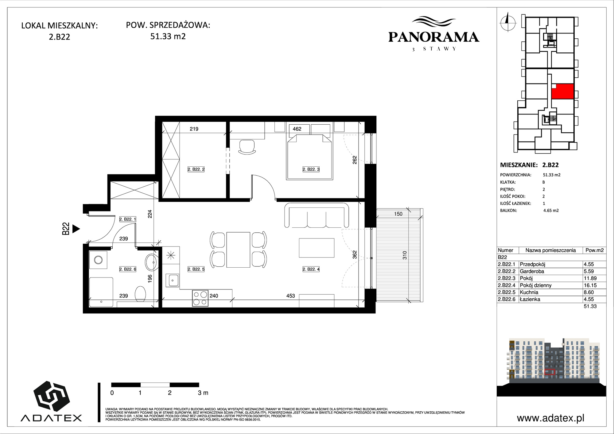 Mieszkanie 51,33 m2 - 2.B22, Osiedle Panorama 3 Stawy Katowice - Katowice