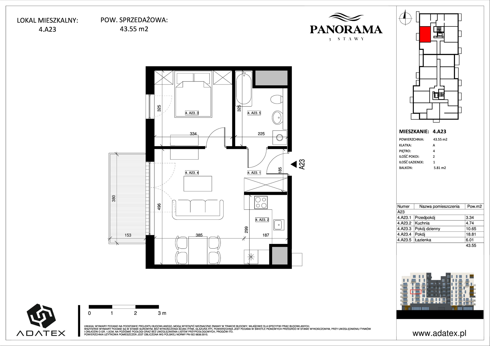 Powierzchnia 43.55 m2