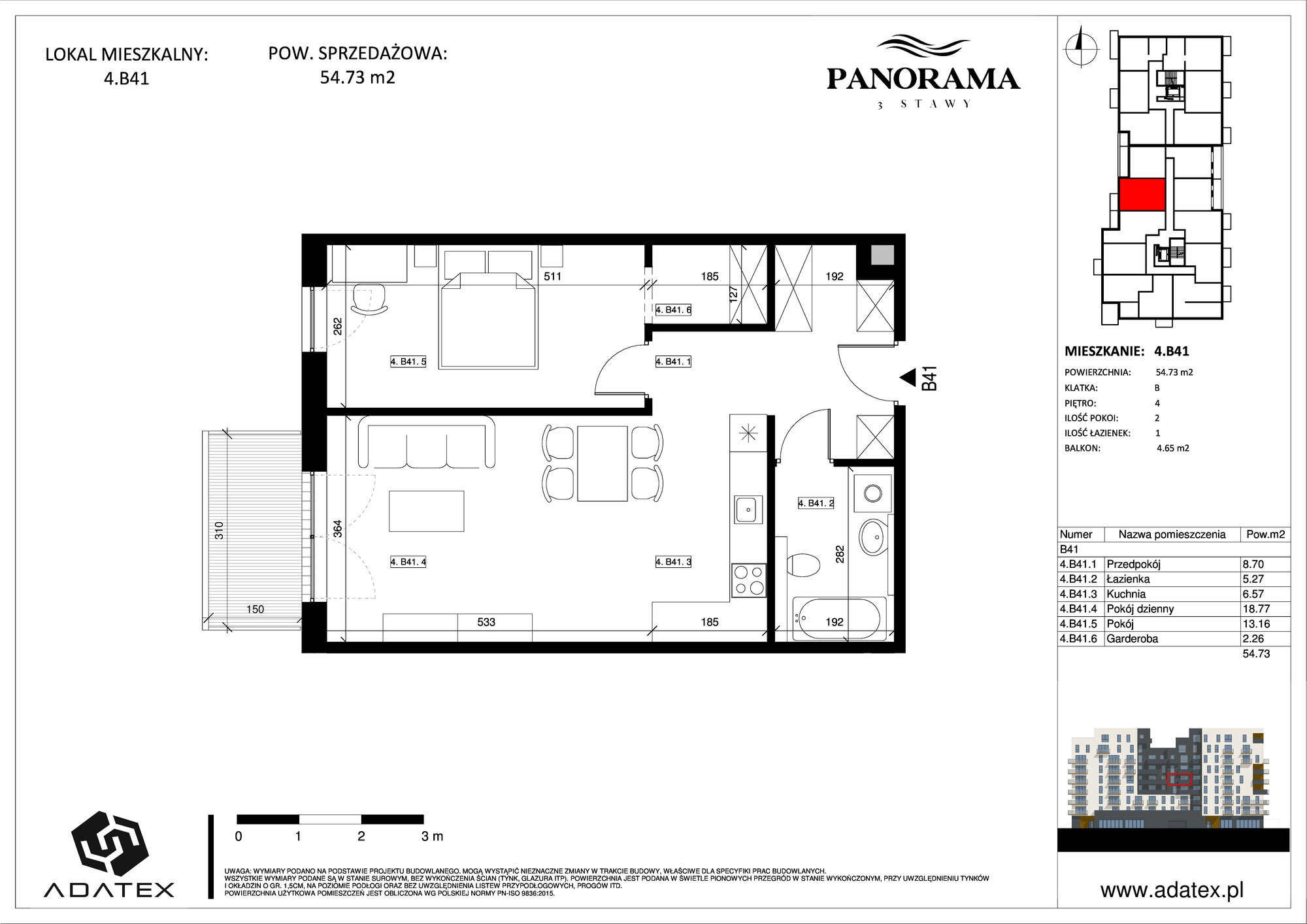 Powierzchnia 54.73 m2