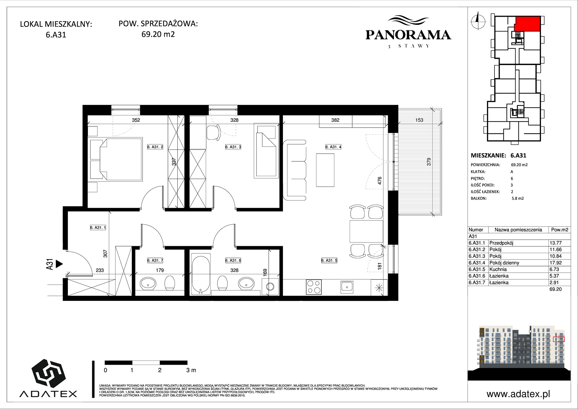 Mieszkanie 69,20 m2 - 6.A31, Osiedle Panorama 3 Stawy Katowice - Katowice