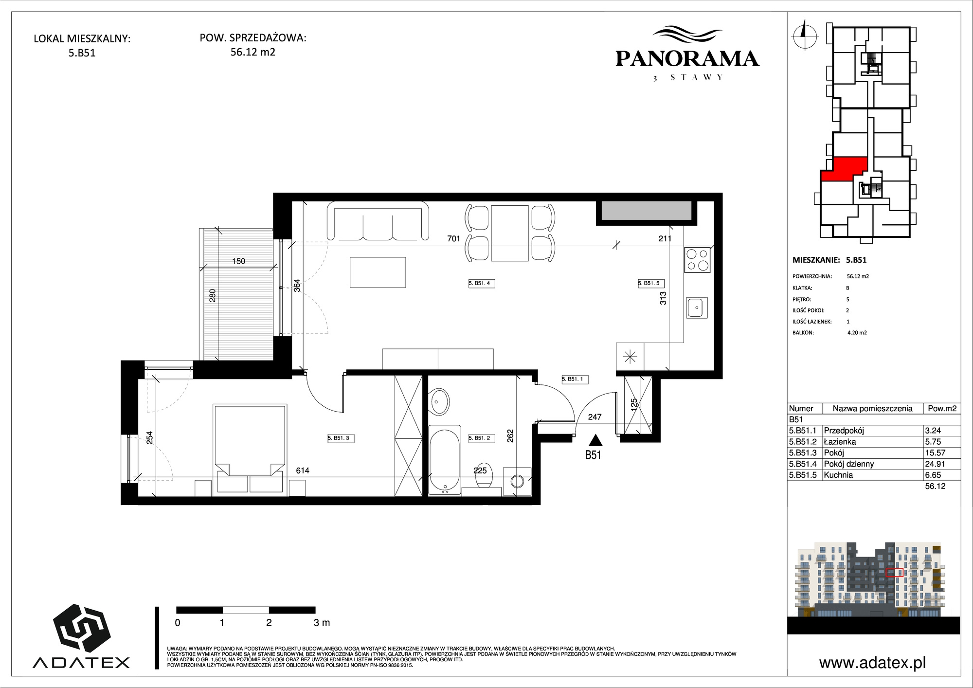 Mieszkanie 56,12 m2 - 5.B51, Osiedle Panorama 3 Stawy Katowice - Katowice