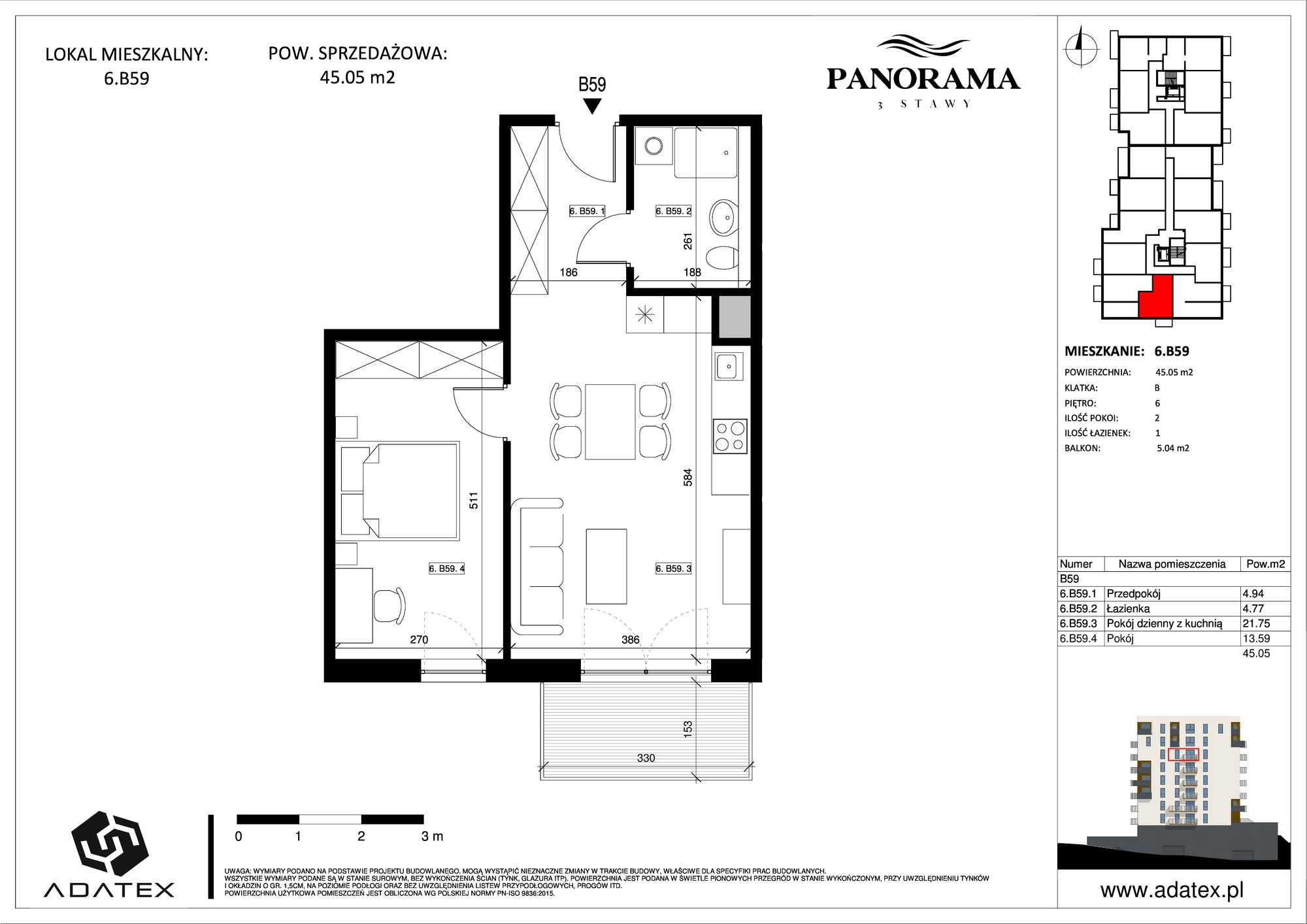 Mieszkanie 45,05 m2 - 6.B59, Osiedle Panorama 3 Stawy Katowice - Katowice