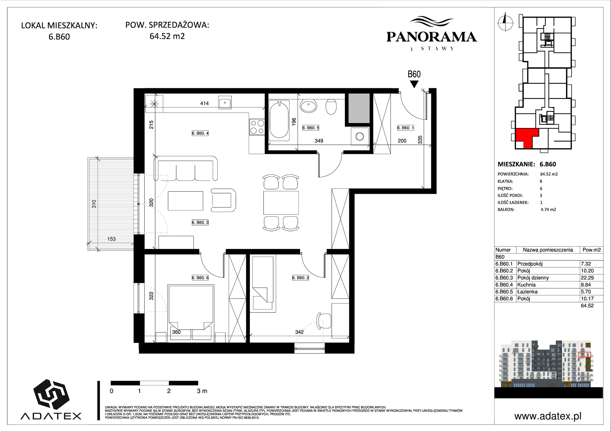 Mieszkanie 64,52 m2 - 6.B60, Osiedle Panorama 3 Stawy Katowice - Katowice