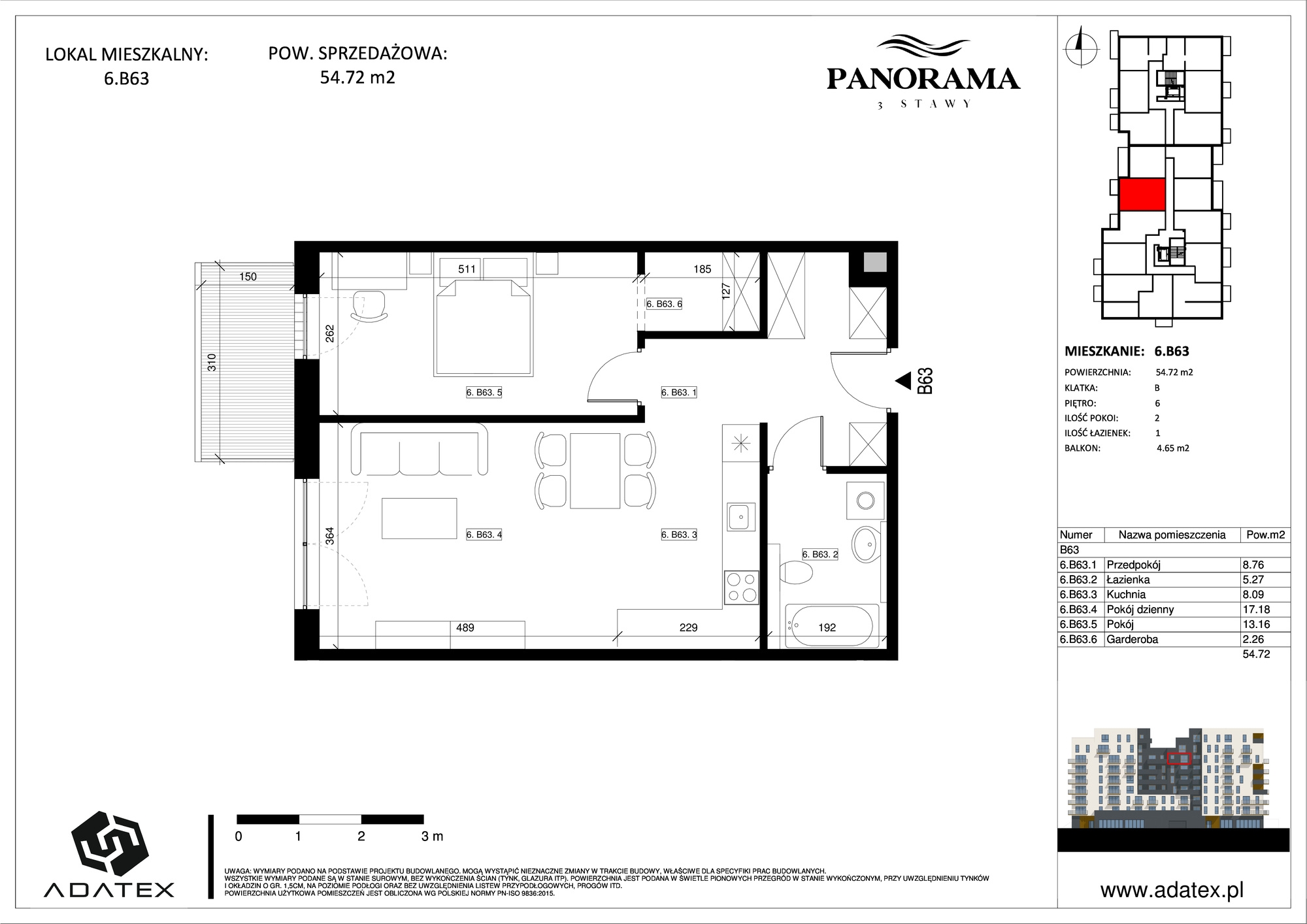 Mieszkanie 54,72 m2 - 6.B63, Osiedle Panorama 3 Stawy Katowice - Katowice