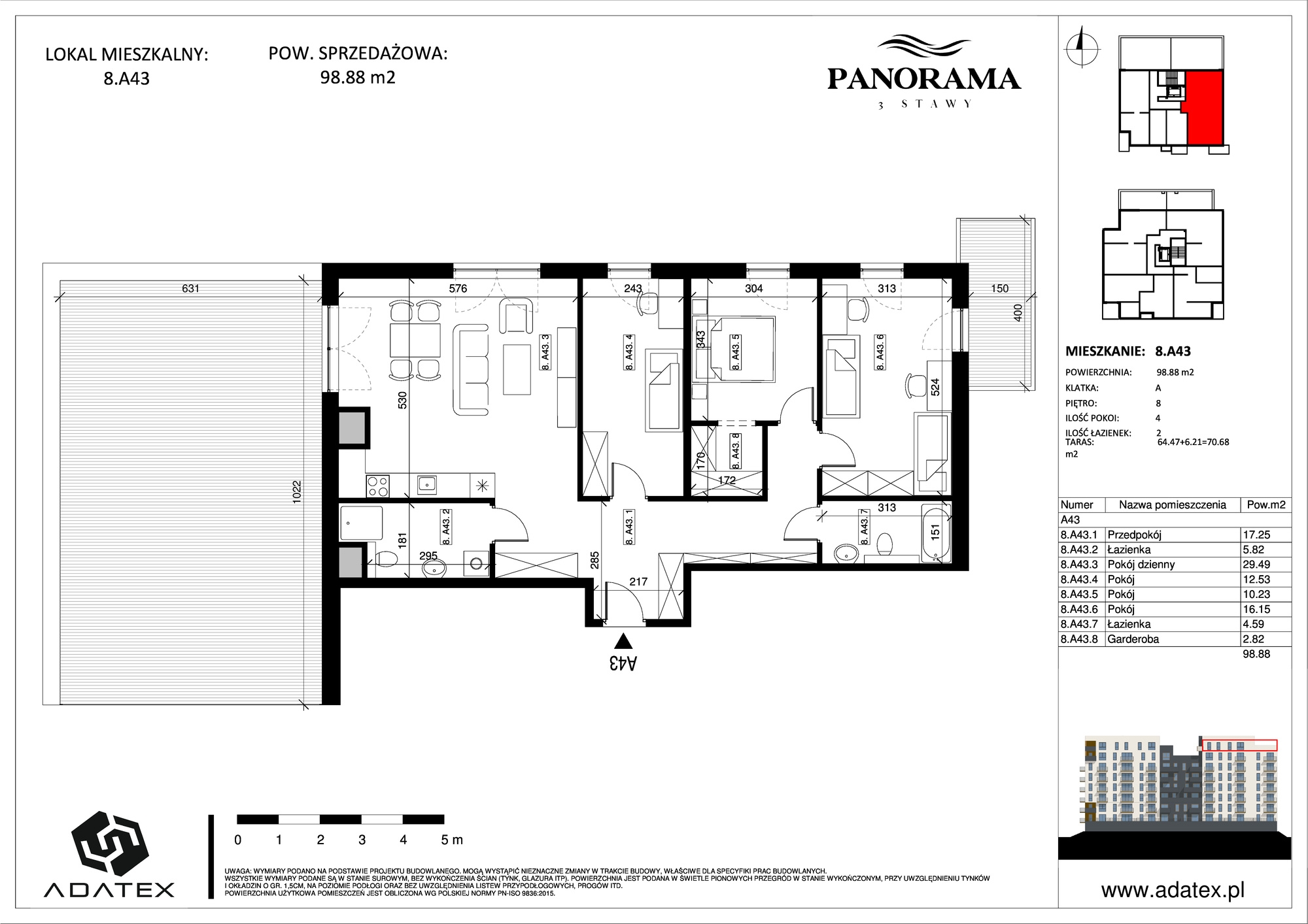 Mieszkanie 98,88 m2 - 8.A43, Osiedle Panorama 3 Stawy Katowice - Katowice