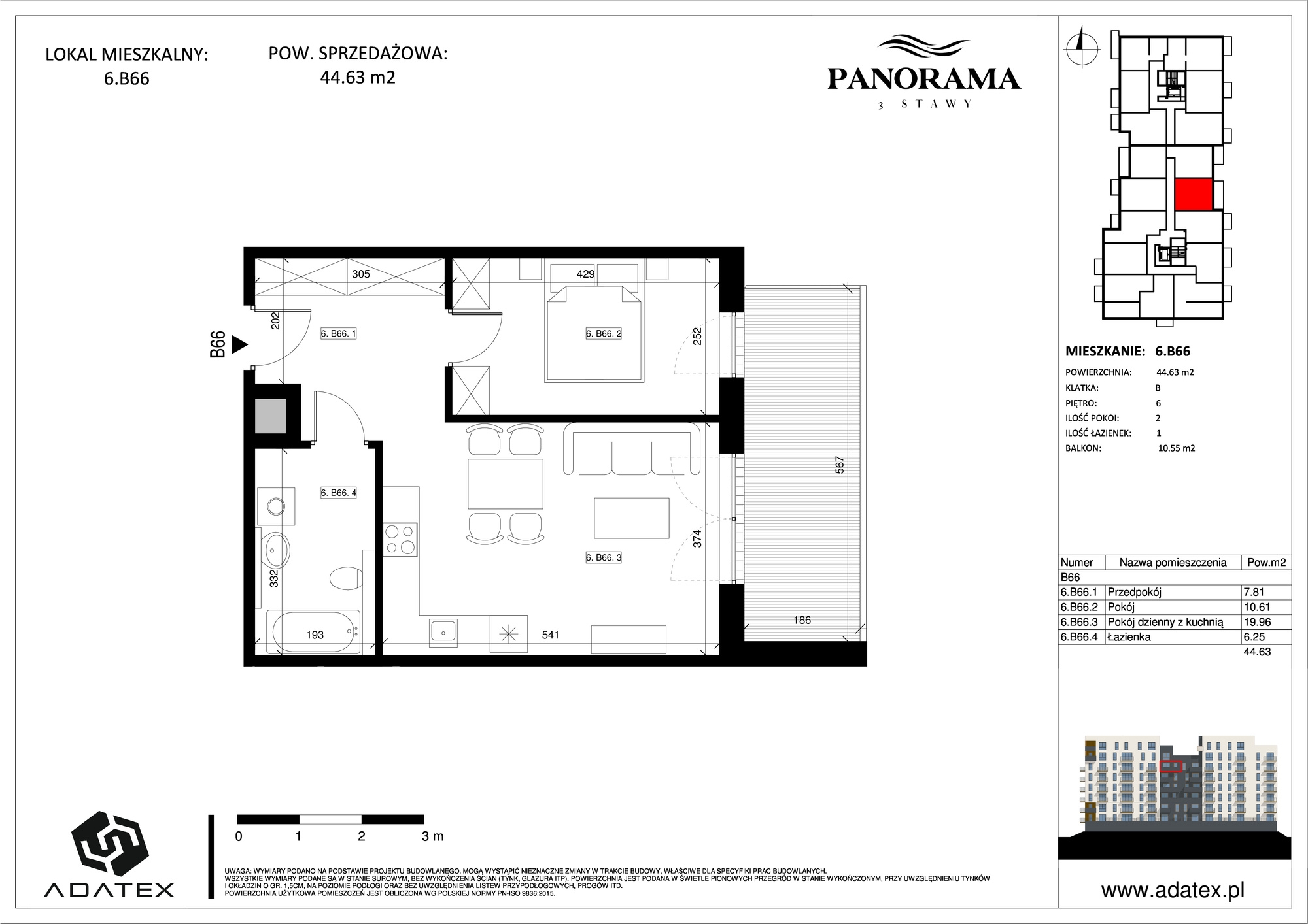 Przedmiotem sprzedaży jest nowe, dwupokojowe mieszkanie o powierzchni 44,63 m2.