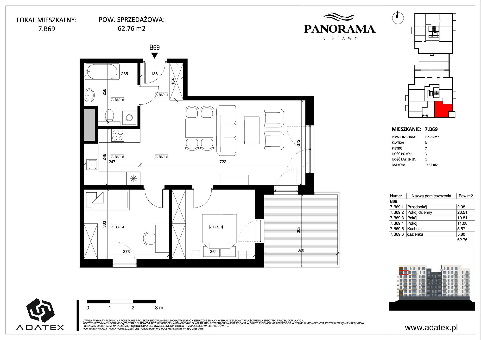 Mieszkanie 62,76 m2 - 7.B69, Osiedle Panorama 3 Stawy Katowice - Katowice