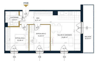 - Salon z aneksem (24,68 m²)