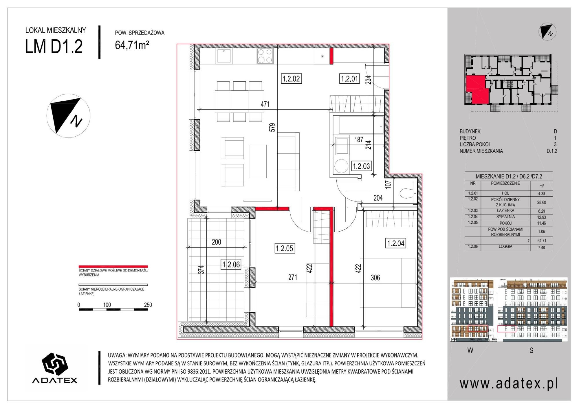- Mieszkanie 64,71 m2 LM D1.2 budynek D