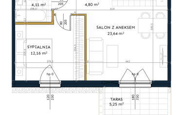 - Salon z aneksem (23,64 m²)