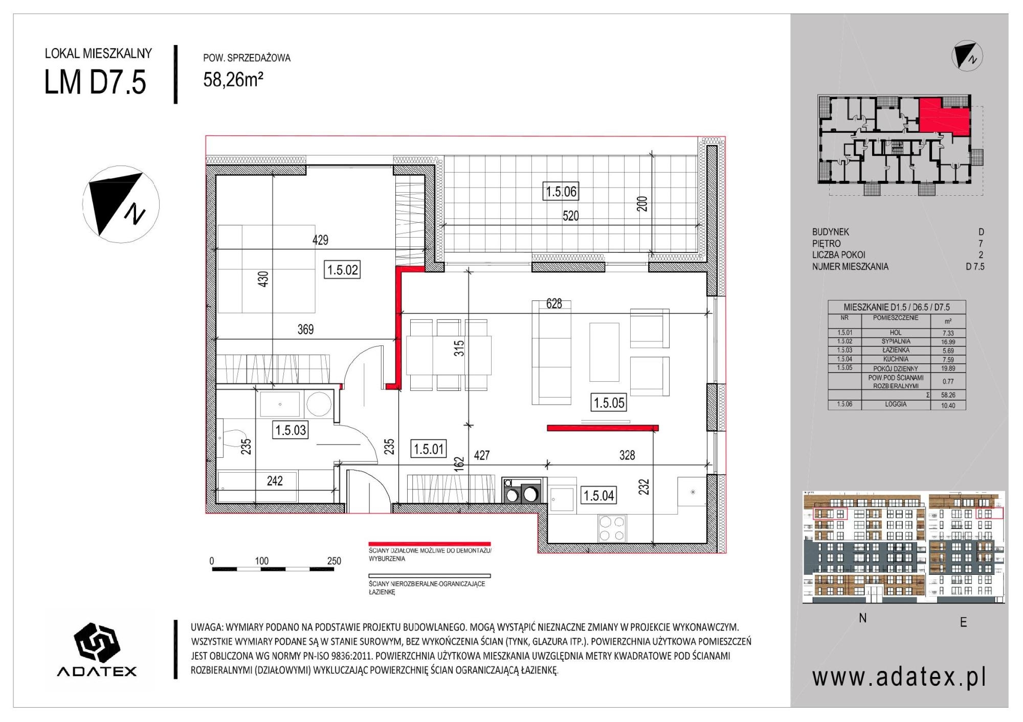 - Mieszkanie 58,26 m2 LM D7.5 budynek D