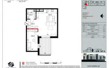 Mieszkanie 51,50 m2 LM A22 budynek A, Osiedle Kaskada Zabrze - Zabrze