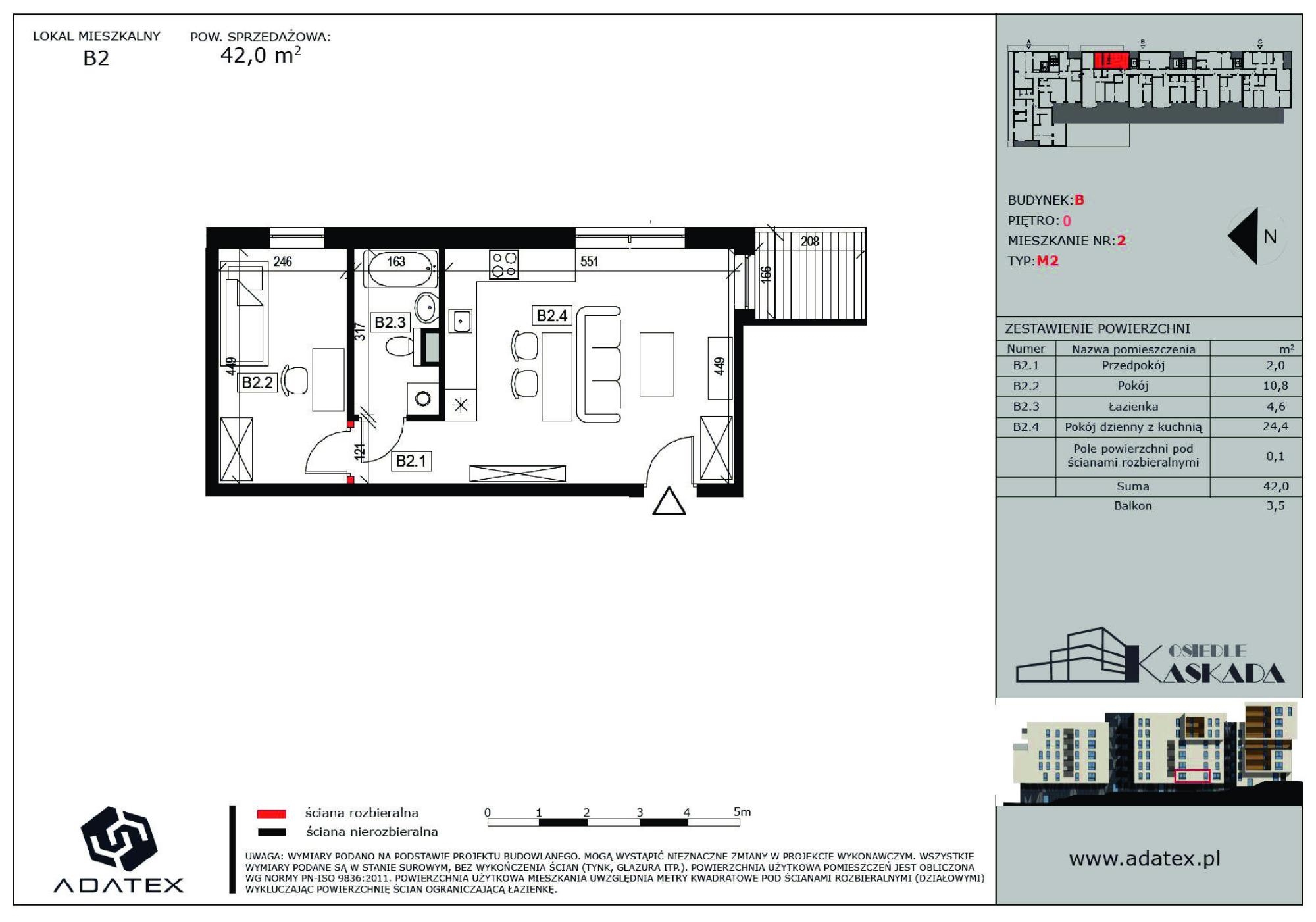 Mieszkanie 42,00 m2 LM B2 budynek B, Osiedle Kaskada Zabrze - Zabrze