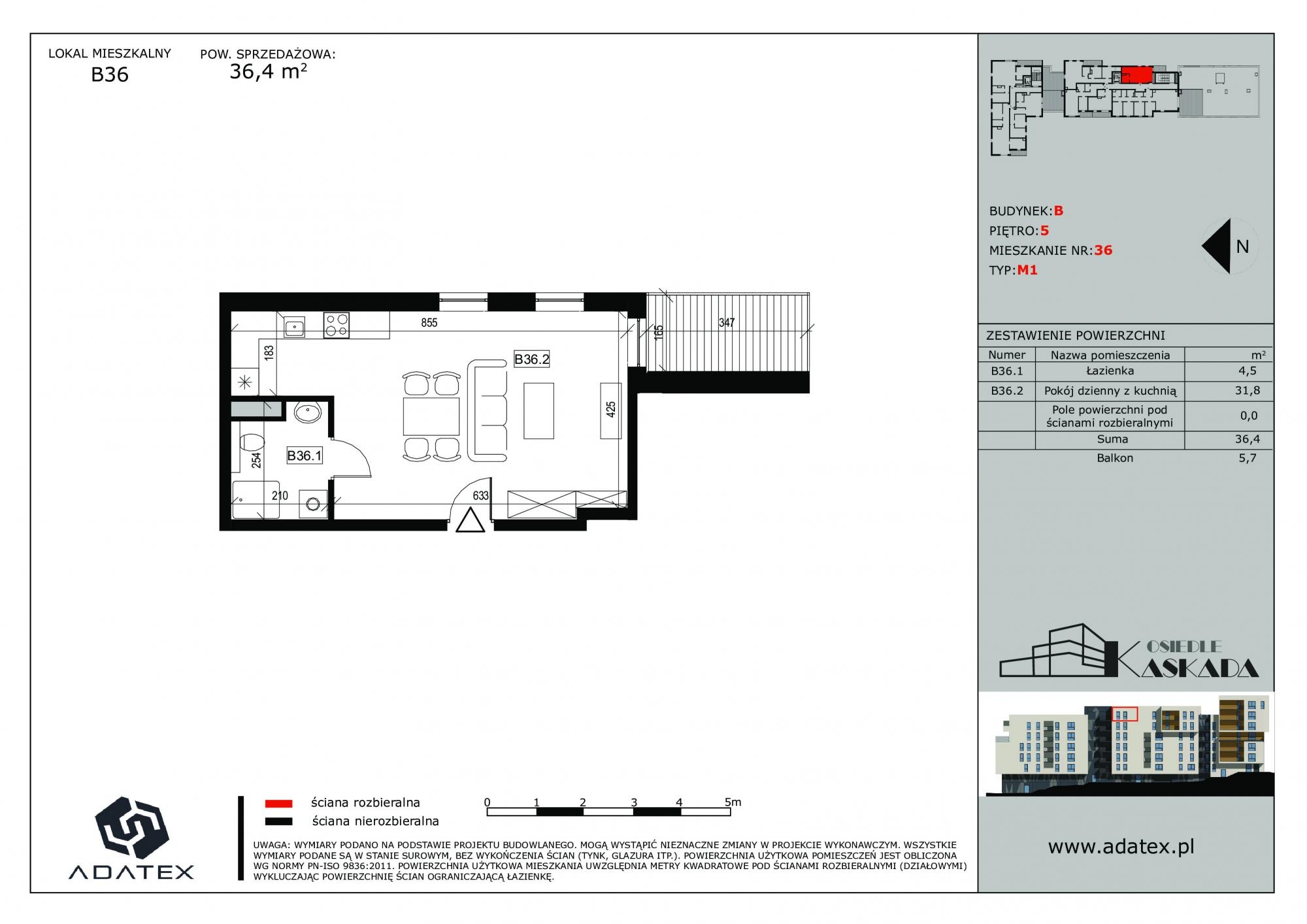 Mieszkanie 36,40 m2 LM B36 budynek B, Osiedle Kaskada Zabrze - Zabrze