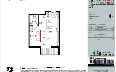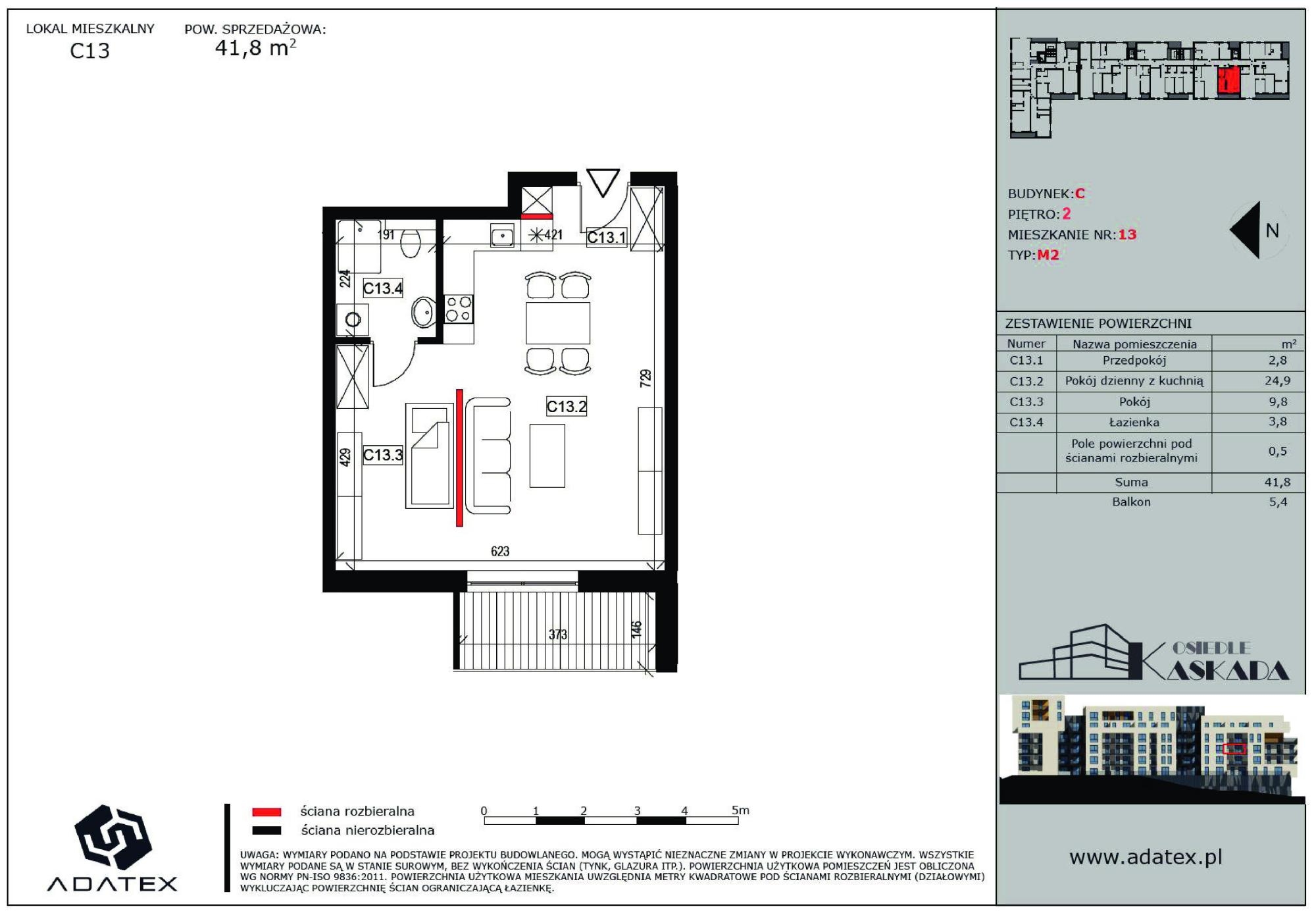 Oferujemy na sprzedaż nowe 2 pokojowe mieszkanie, na 2 piętrze o powierzchni 41,80 m2 a w nim m.in.: