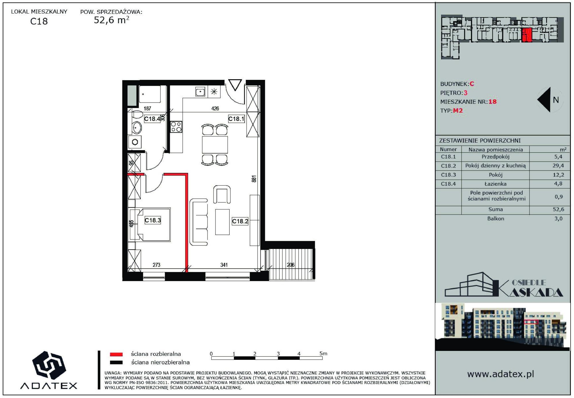 Mieszkanie 52,60 m2 LM C18 budynek C, Osiedle Kaskada Zabrze - Zabrze